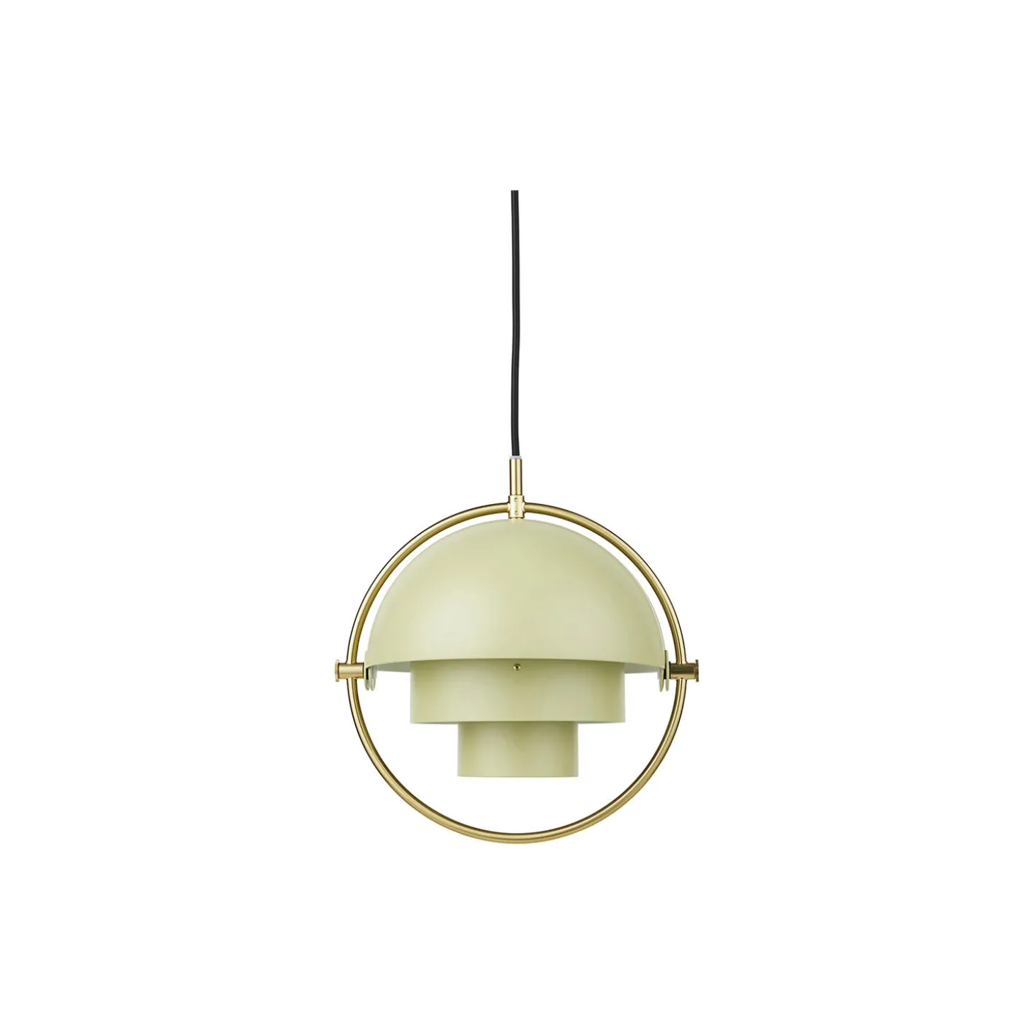 Multi-Lite Pendant i pulvlelakeret stål og poleret messing fra GUBI. Farve: desert sage/brass. Mål: H: 28 x Ø 22,5 cm. Lyskilde: 5-6W LED E14. Design: Louis Weisdorf.