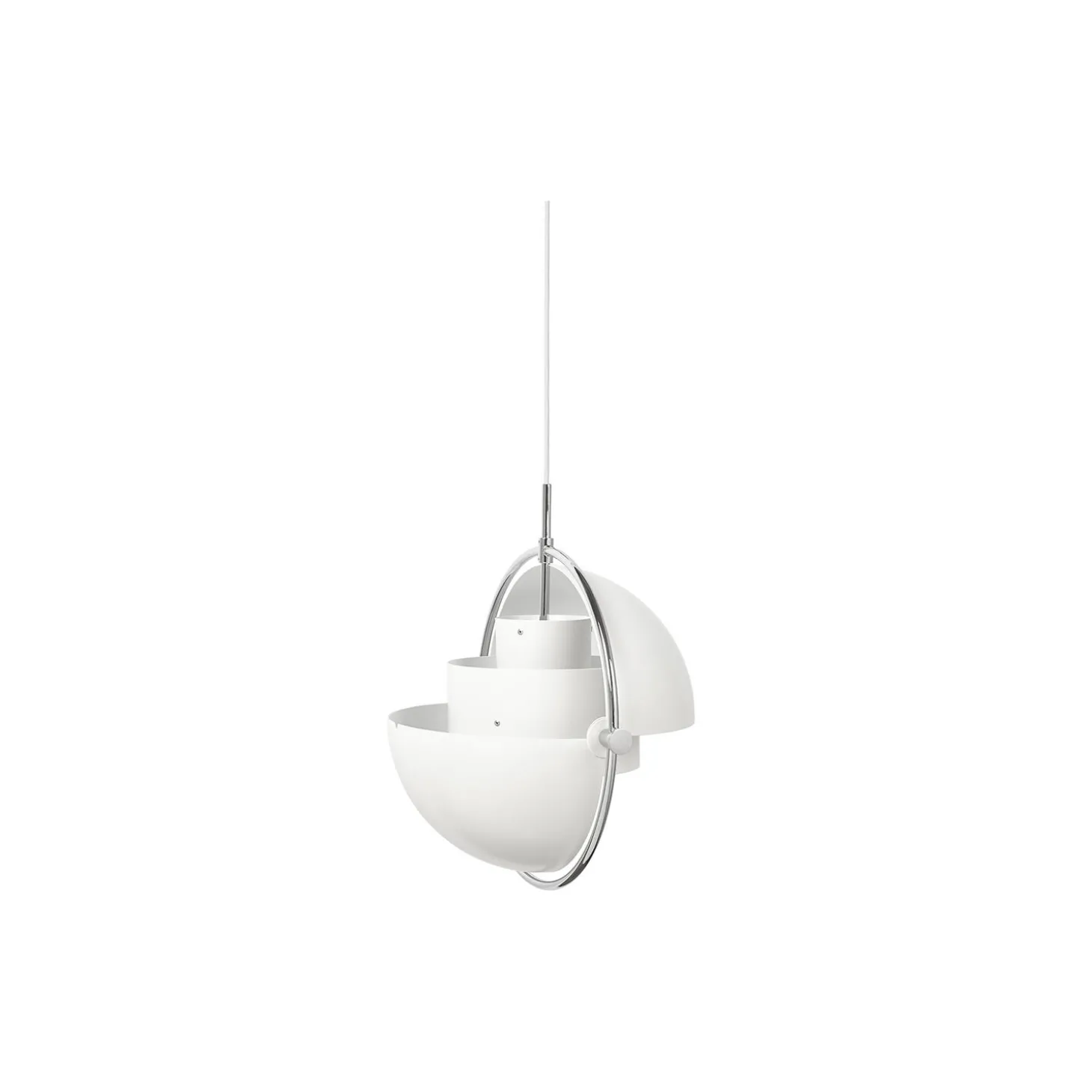 Multi-Lite Pendant i pulvlelakeret stål og poleret krom fra GUBI. Farve: white semi matt/chrome. Mål: H: 42 x Ø 32 cm. Lyskilde: 6-10W LED E27. Design: Louis Weisdorf.