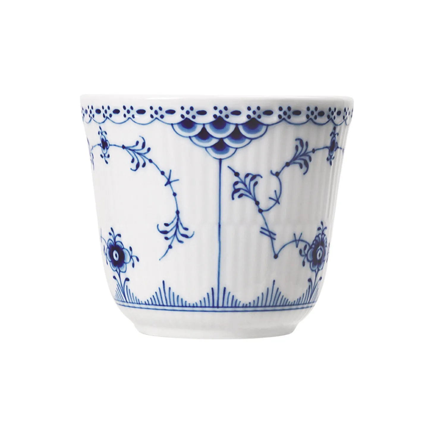 Musselmalet Halvblonde termokop i porcelæn fra Royal Copenhagen. Det klassiske termokrus i Musselmalet Halvblonde. Tro mod sit design holder den drikkevarer varme i lang tid. Selvom mønsteret er fra 1888, føles dette krus moderne og frisk.