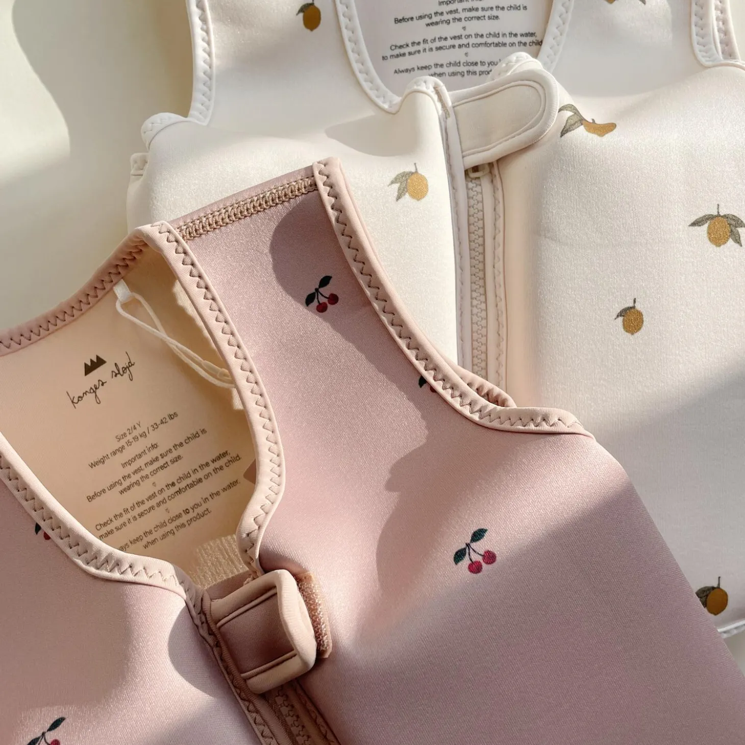 Flydevest lavet af 80 % neopren og 20 % polyester. Designet med både lynlås- og velcrolukning. Har en sikkerheds rem ved skridtet med spænde, så dit barn ikke kan glide ud af vesten. Tilgængelig i 3 størrelser: 1-2 år: vægtinterval 11-15 kg. 2-4 år: vægtinterval 15-20 kg. 4-6 år: vægtinterval 20-25 kg. ADVARSEL: Dette er ikke livreddende udstyr. Må kun bruges i vand hvor barnet kan bunde. Beskytter ikke mod drukning. Brug kun under konstant opsyn. Brug ikke til sejlads.