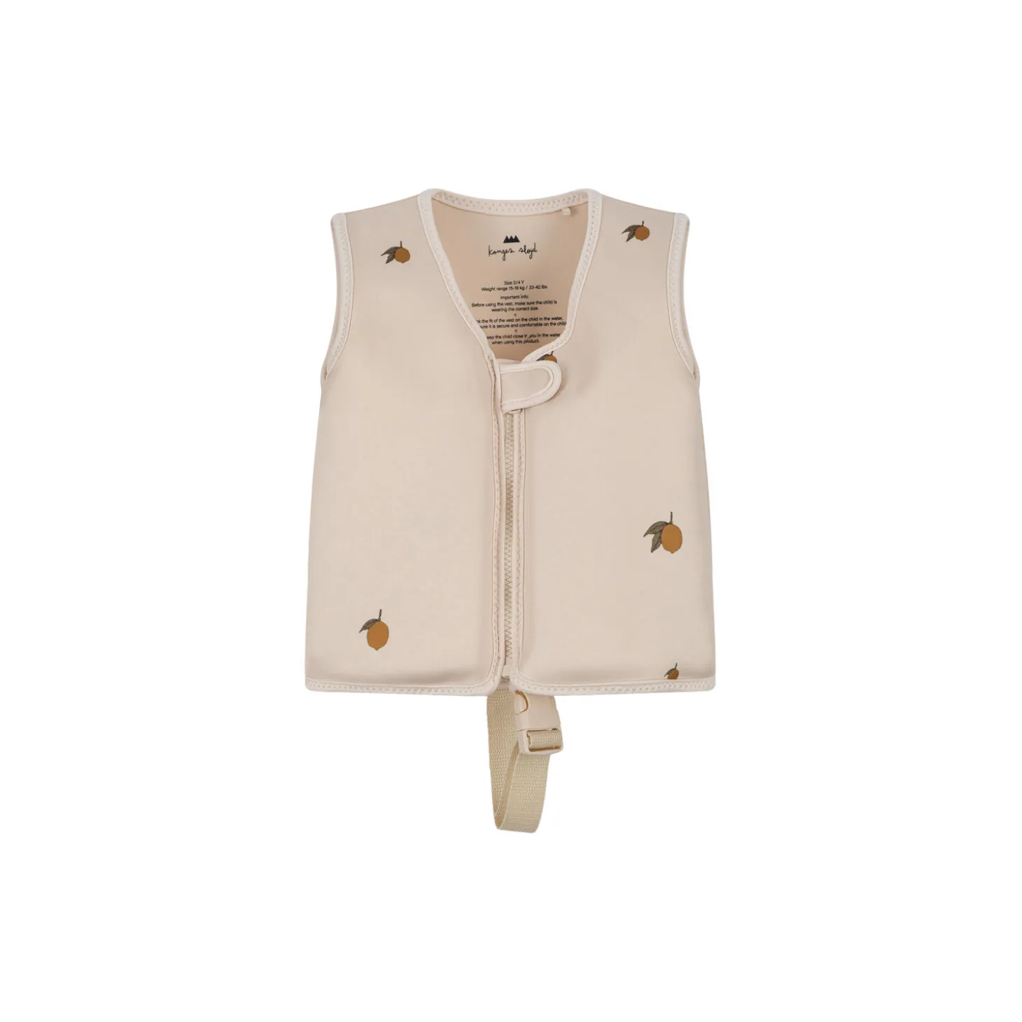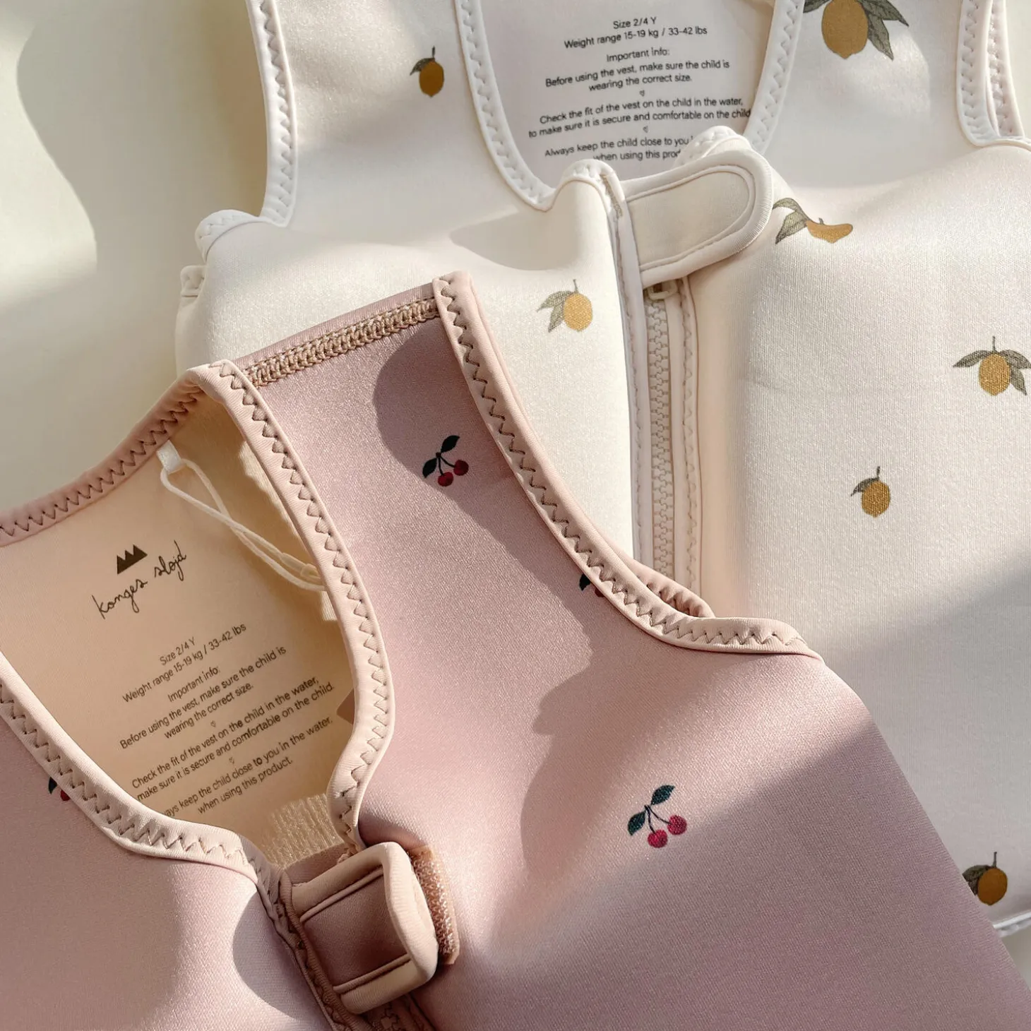 Flydevest lavet af 80 % neopren og 20 % polyester. Designet med både lynlås- og velcrolukning. Har en sikkerheds rem ved skridtet med spænde, så dit barn ikke kan glide ud af vesten. Tilgængelig i 3 størrelser: 1-2 år: vægtinterval 11-15 kg. 2-4 år: vægtinterval 15-20 kg. 4-6 år: vægtinterval 20-25 kg. ADVARSEL: Dette er ikke livreddende udstyr. Må kun bruges i vand hvor barnet kan bunde. Beskytter ikke mod drukning. Brug kun under konstant opsyn. Brug ikke til sejlads.