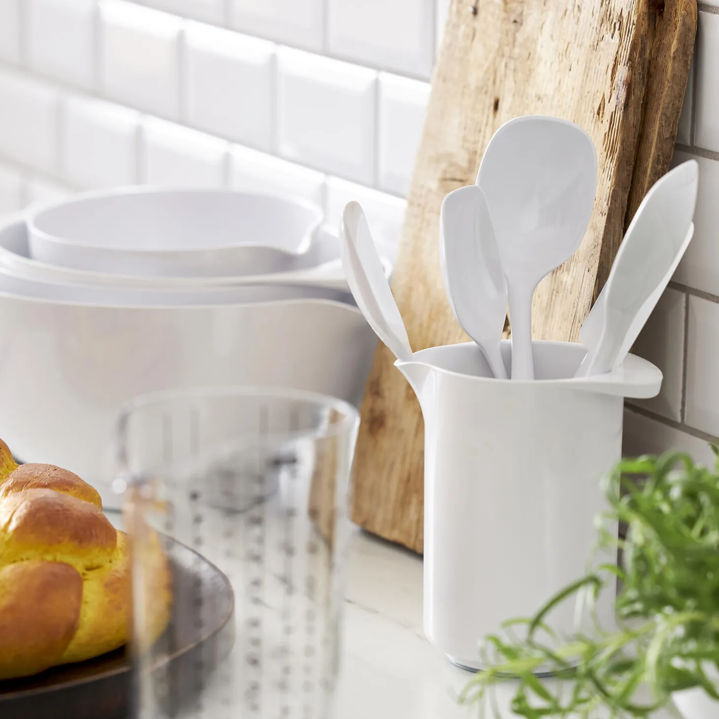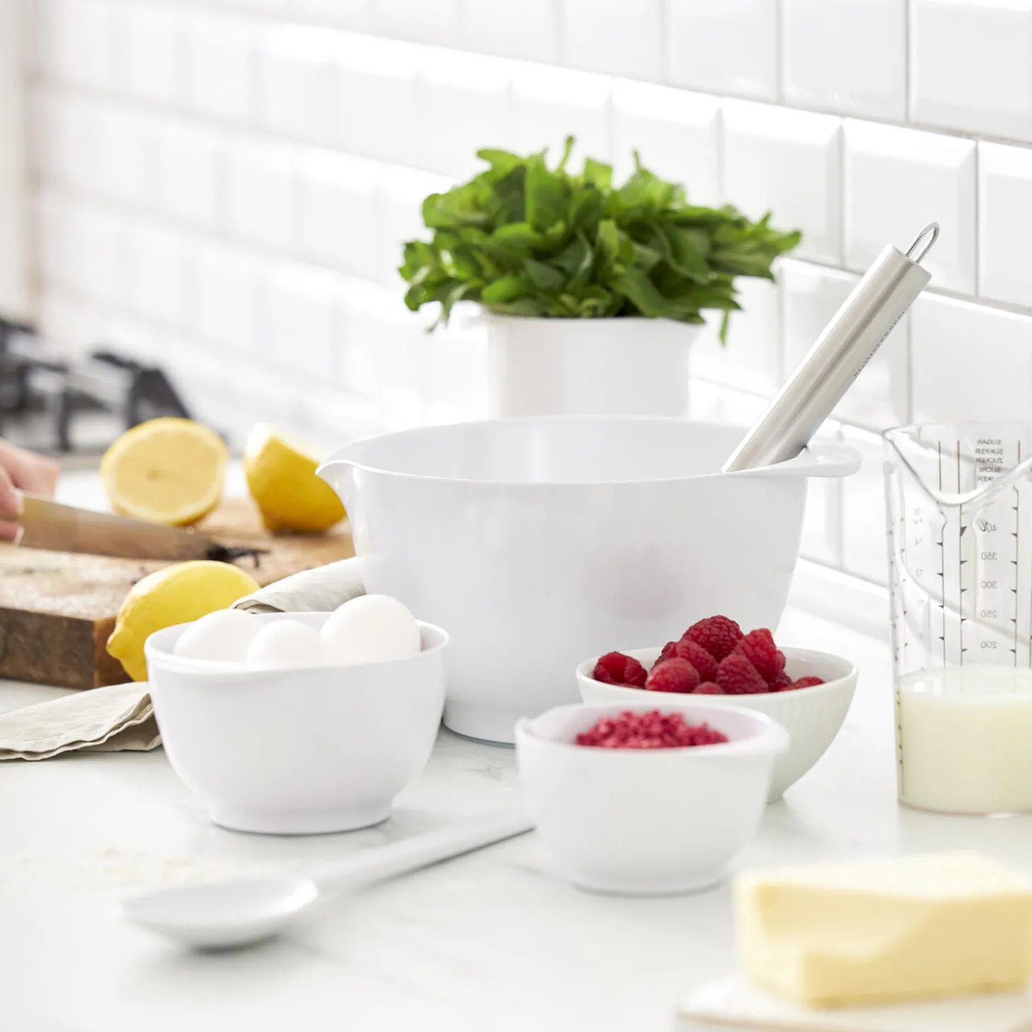 Margrethe-skålen er den klassiske røreskål med det gode greb, den praktiske hældetud og den skridsikre bundring. Den nye version af Margrethe-skålen er fremstillet af plastmaterialet Durostima®. Skålen er nu endnu stærkere og mere brudsikker, og med det nye materiale kan den også tåle mikroovn og fryser. Margrethe-skålen er velegnet til såvel tilberedning som servering, og tilkøbes der låg, er røreskålen omdannet til en praktisk opbevaringsskål. 5 års garanti.