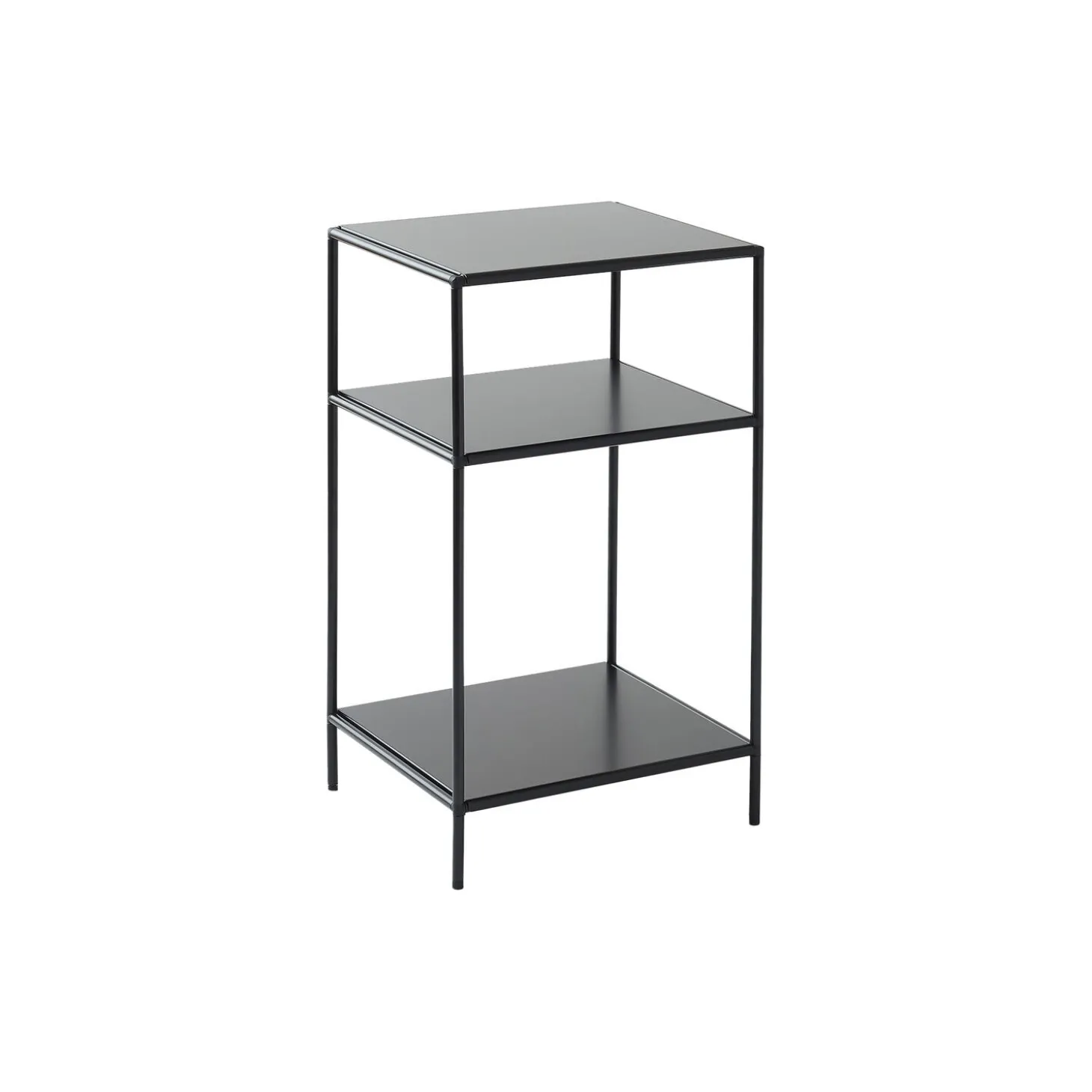 Nightstand i pulverlakeret stål med hylder i metal fra Abstracta® System. Farve: black. Mål: H: 70 x L: 40 x D: 36 cm. Design: Poul Cadovius.