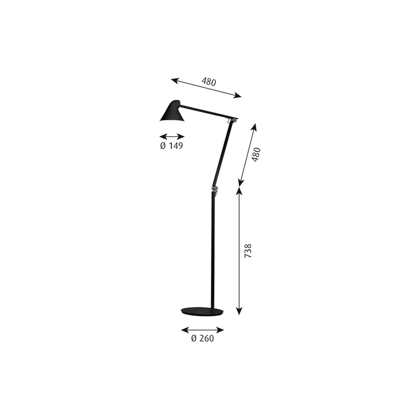 NJP gulvlampe i aluminium fra Louis Poulsen. Farve: sort. Mål: H: 125 x L: 56 x Ø 26 cm. Lyskilde: 10W integreret LED, 2700 K. Design: nendo – Oki Sato.