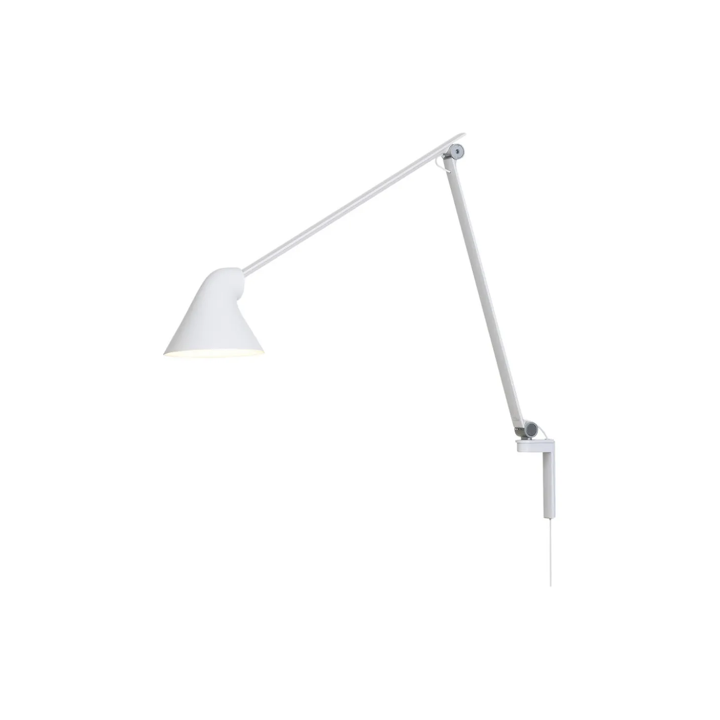 NJP lang væglampe i aluminium fra Louis Poulsen. Farve: hvid. Mål: H: 60 x L: 60 x Ø 15 cm. Lyskilde: 10W integreret LED, 2700 K. Design: nendo – Oki Sato.