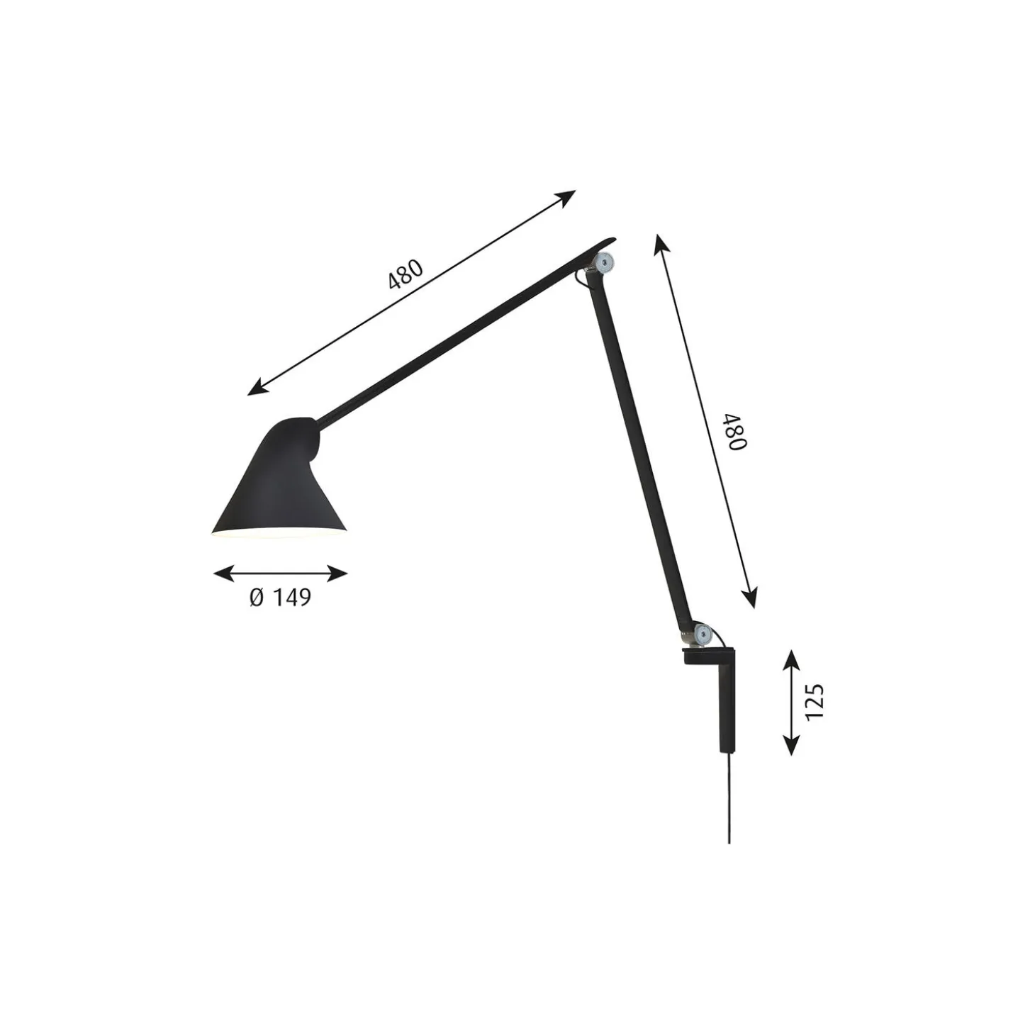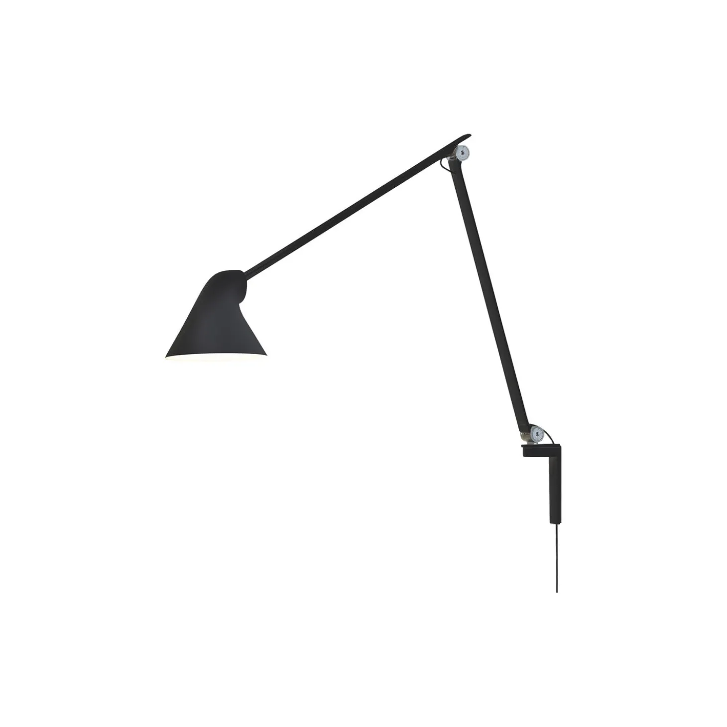 NJP lang væglampe i aluminium fra Louis Poulsen. Farve: sort. Mål: H: 60 x L: 60 x Ø 15 cm. Lyskilde: 10W integreret LED, 2700 K. Design: nendo – Oki Sato.