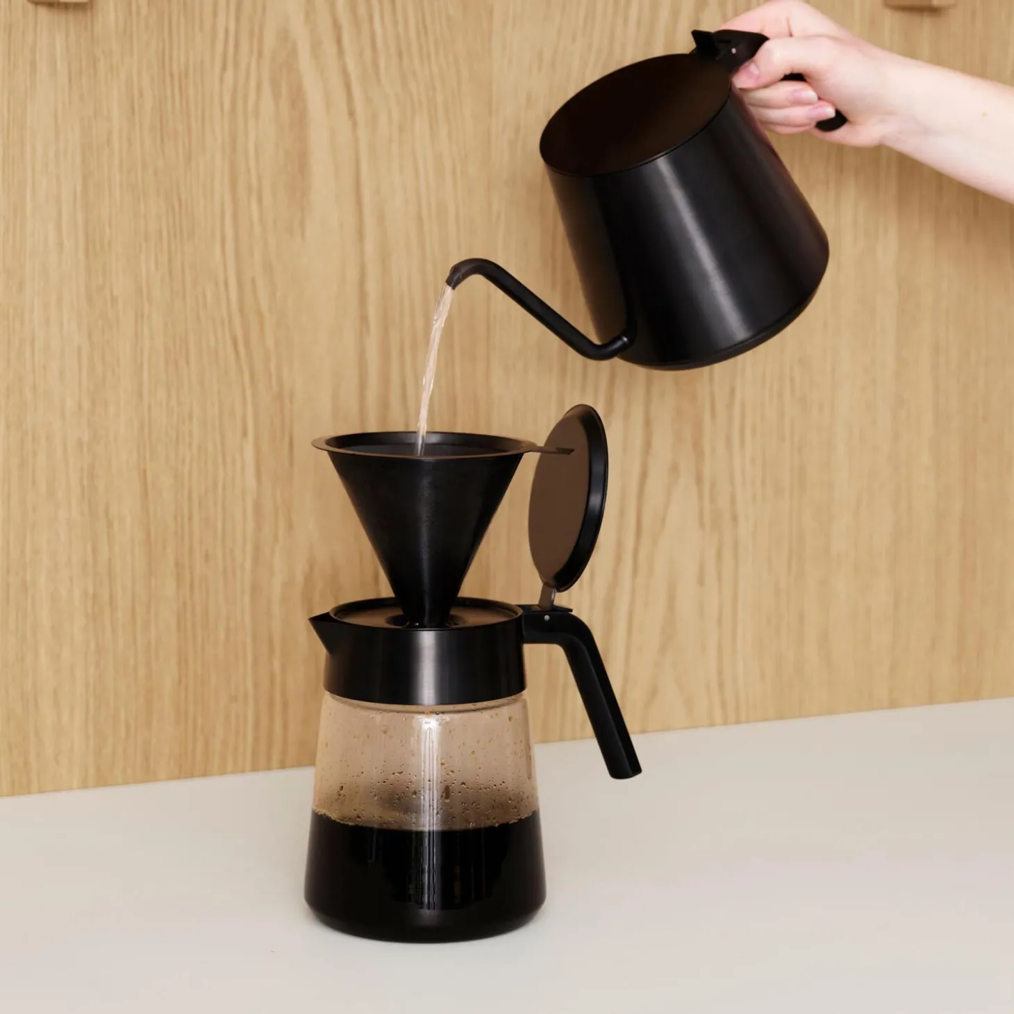 Enkel serveringskande der er designet til at passe med de forskellige filtre i Nohr-serien – pour over og slow brew. Hvad end det gælder pour over kaffe eller coldbrew, brygges der direkte i serveringskanden. Efterfølgende fjernes filteret og kanden fungerer som elegant serveringskande. På kanden er der afmærkninger, der korresponderer med mærker i henholdsvis kaffetragten og coldbrew filteret, så der opnås den perfekte balance mellem vand og kaffe. Norh-serien er designet af Søren Refsgaard og består af kaffetragt, gooseneck kedel, cold brew filter og en serveringskande i glas. Ønsket har været at skabe en kaffeserie for kaffeentusiaster, der ønsker den ultimative smagsoplevelse. At brygge god kaffe er et håndværk, der kræver tid og nærvær – det understreges af roen og enkeltheden i designet.