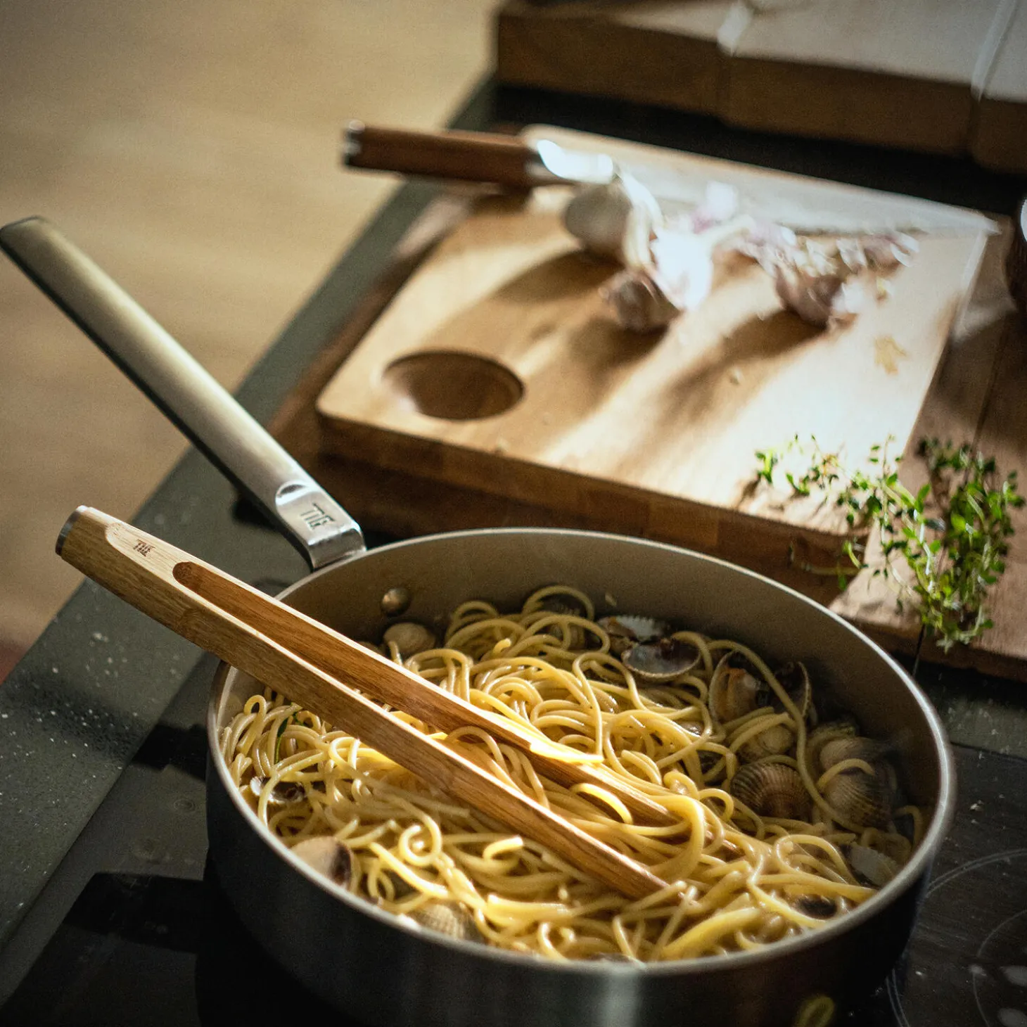 Født af en lang håndværksmæssig arv og solidt forankret i den nordiske jord er Fiskars Norden køkkenredskaber lavet af førsteklasses materialer. Det massive egetræ af høj kvalitet, der bruges til Norden tang, er slidstærkt med en æstetisk lys farve. Det er også sikkert at bruge med non-stick kogegrej. Som alle Norden-redskaber er dette madlavnings- og serveringssæt perfekt afbalanceret for komfort og kontrol og smukt designet til at passe ind i det moderne køkken.