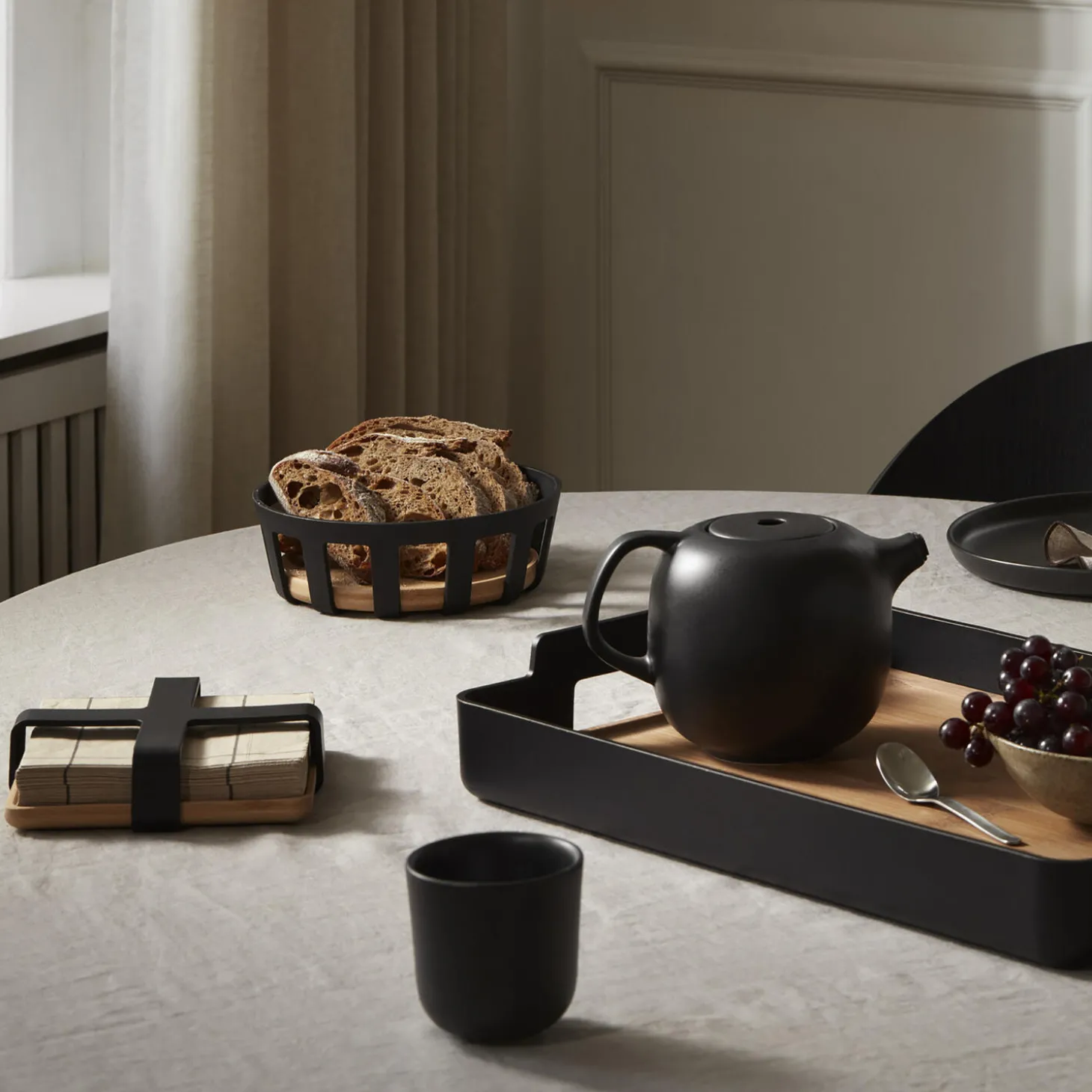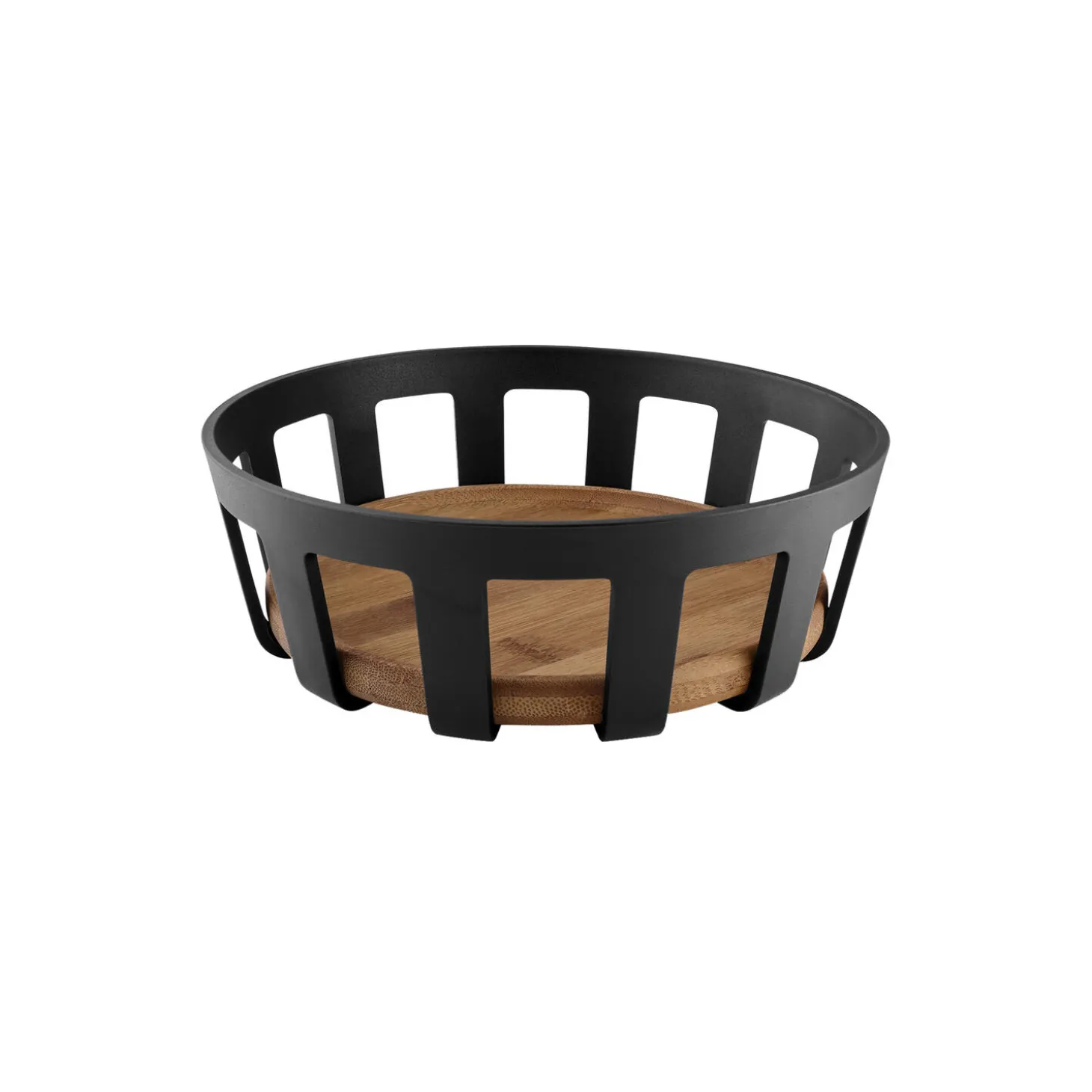 Giv de nybagte boller flot følgeskab af funktionel brødkurv i mat, sort kunststof og FSC-certificeret bambus. Det elegant underspillede og tidløse design klæder ethvert hjem. Kurven kan også sættes på bordet med f.eks. frisk frugt. Nem at rengøre, aftørres blot med opvredet klud. Bambus vedligeholdes med jævnlig oliering.