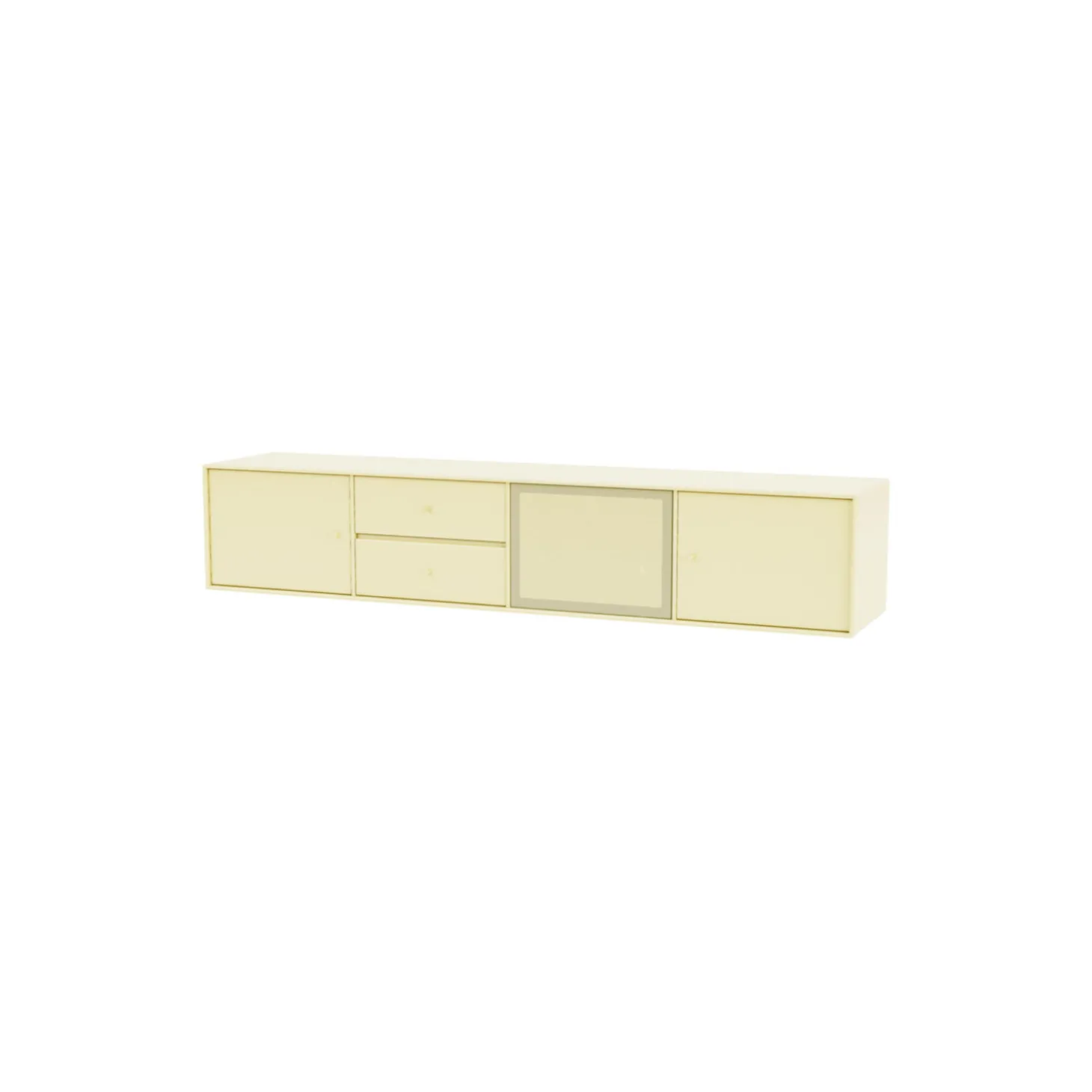 OCTAVE VIII er et rummeligt og silrent tv-bord med ben, tilgængeligt i 41 farver. Ophængsbeslag medfølger.