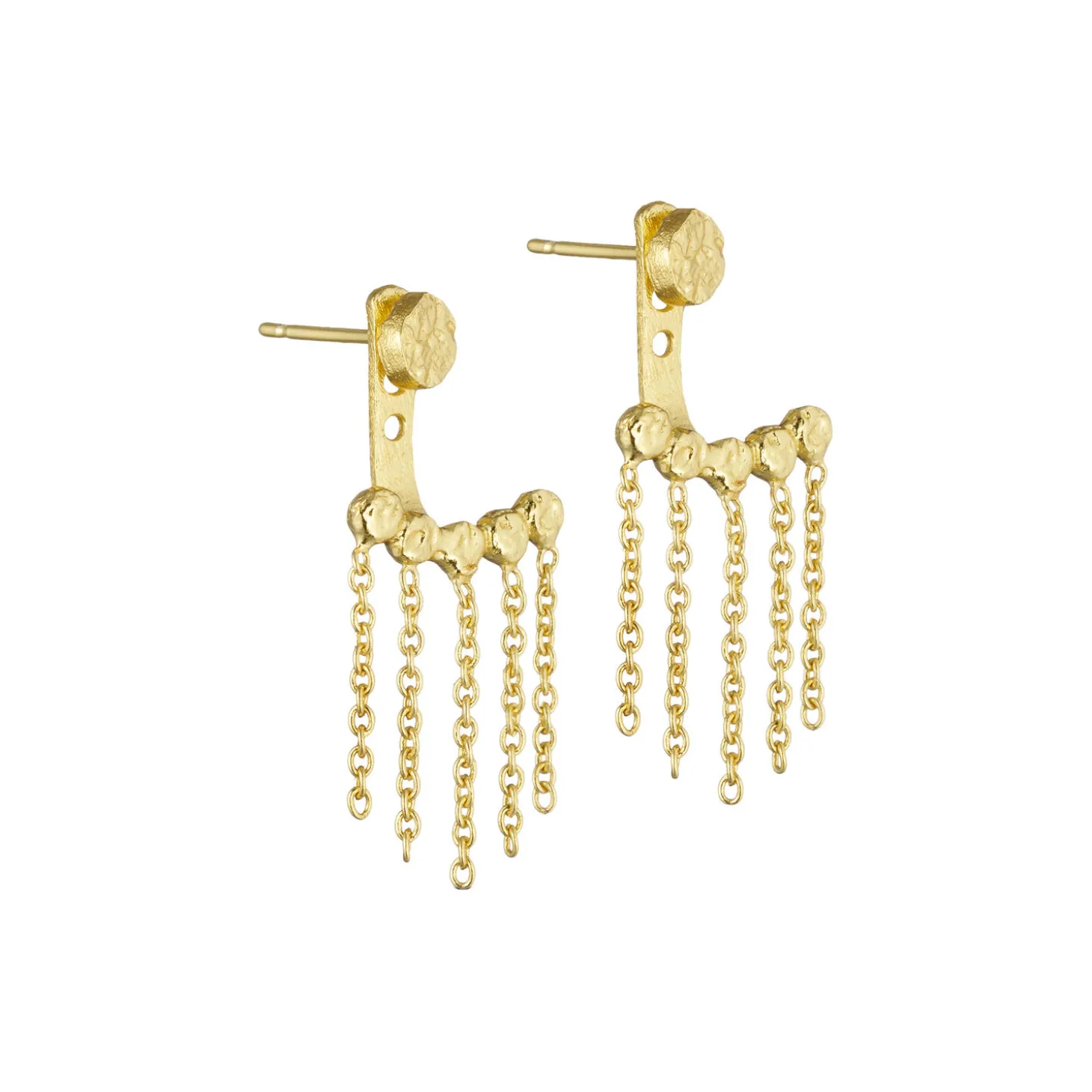 Stift ørering med kæder. Kædevedhænget bæres bag øret, så kæderne hænger fra øreflippen.