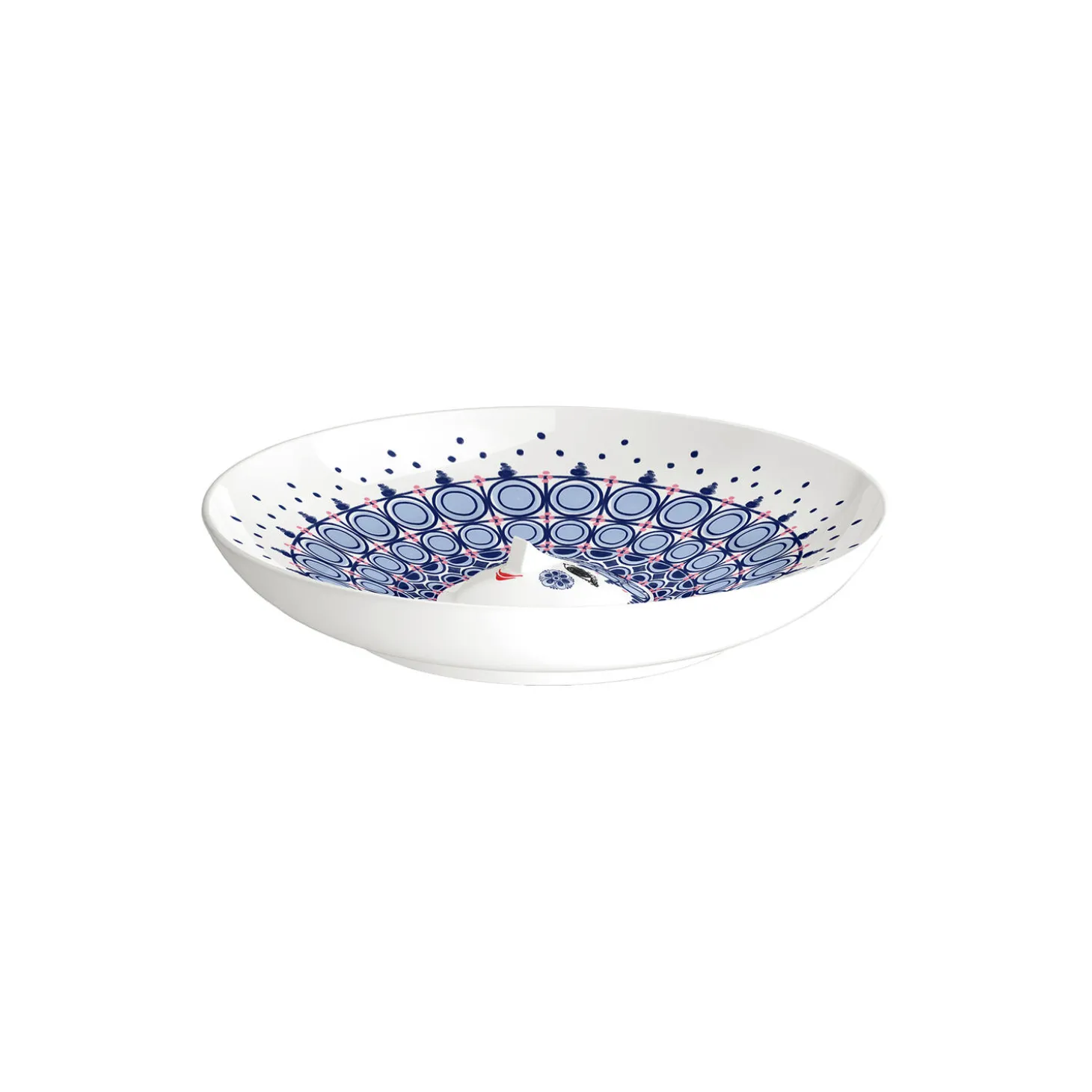 Udfold din farverige personlighed og skab plads til glæde med Bjørn Wiinblads Olga. Med sit søde smil, kulørte kinder og karakterfulde dekorationer rummer Olga på alle måder essensen af Bjørn Wiinblad som person og kunstner – også når hun tager form som et stort og dekorativt bordfad. Glad og drømmende skaber hun liv og personlighed i indretningen med sit poetiske udtryk og sine sprudlende farver. Og med det smukke og smilende Olga-bordfad fra Bjørn Wiinblad i overvejende mørkeblå nuancer med lyseblå toner og lyserøde prikker skaber du finurlighed i fuldt flor overalt i hjemmet. Bordfadet måler 33 cm i diameter og 6 cm i højden og er perfekt som et flot og figurativt fad til frisk frugt eller som et betagende som et unikt statement piece vil emme af personlighed og kreativ udfoldelse. Men hvem siger, at et bordfad overhovedet behøver at stå på bordet? For helt i tråd med Bjørn Wiinblads kunstneriske ånd er der næsten igen grænser for, hvor du kan placere Olga-fadet. Brug de to huller på bagsiden og hæng det op på væggen som en betagende dekoration, der vil emme af personlighed og kreativ udfoldelse. Uanset hvor du finder plads, så kan du i fulde drag nyde det søde, runde ansigt med de mandelformede øjne og den ikoniske trekantede næse, der nok nærmest er selve personificeringen af Bjørn Wiinblads kunst. Olga-bordfadet er lavet af skinnende glaseret keramik med farverige decals, og dekorationerne er en skøn blanding af originale Bjørn Wiinblad-mønstre, der i en skøn blå farvepalet giver dig et moderne og friskt udtryk. Bjørn Wiinblad var en livsglad kunstner med en stor og farverig personlighed, der gik sine egne veje og ikke var bange for at drømme og tænke stort. Den sjæl mærkes også til fulde i Olga, der hviler i sig selv og inviterer os til at udtrykke vores egen stil og personlighed i indretningen med udtryksfulde dekorationer skabt med inspiration i Bjørn Wiinblads originale kunstværker. En ting er sikkert: Det bliver ikke kedeligt, når Olga flytter ind.
