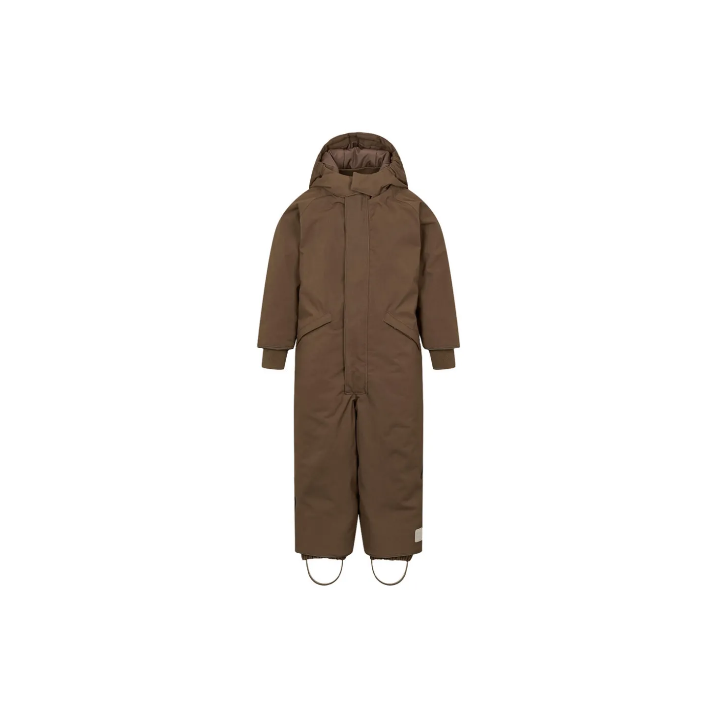 Behagelig, varm og rummelig vinter flyverdragt til børn som føles meget let og blød på kroppen. Flyverdragten har skrå sidelommer med lynlås og lukkes foran med både lynlås og trykknapper. Flyverdragten er udstyret med aftagelig hætte, justerbare siliconestropper, som kan fastgøres under støvlerne for at sikre en god pasform og forhindre sne i at trænge ind. Flyverdragten har elastiske seler indvendigt.