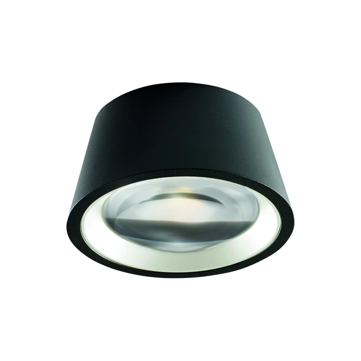 OPTIC Out 1+ loftspot i aluminium og akryl fra LIGHT-POINT. Farve: sort. Mål: H: 5 x Ø 10 x Ø 13 cm. Lyskilde: 10W LED. IP54. 2700K. Kan tilsluttes lysdæmper og anvendes både indendørs og udendørs. Design: Nital Patel.