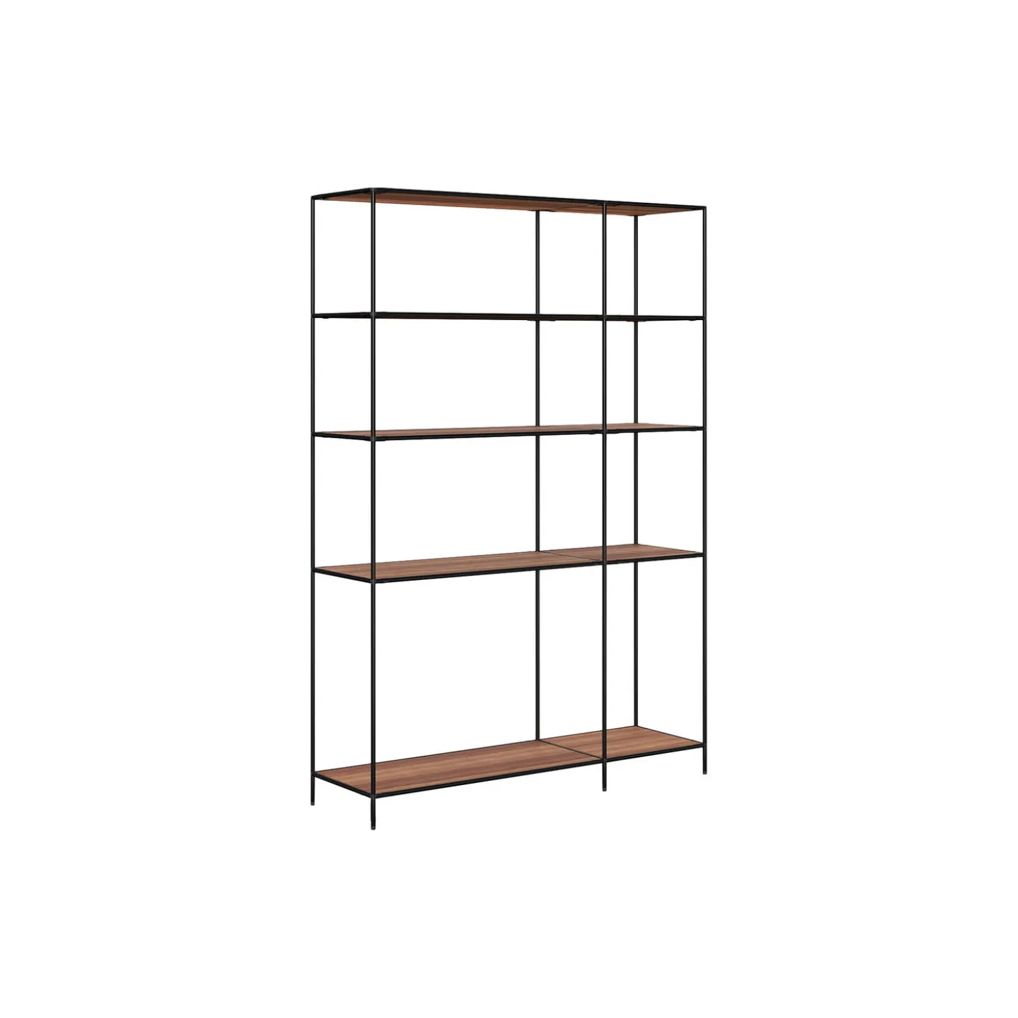 Original Shelf 1+1 i pulverlakeret stål med hylder i valnøddetræsfinér med MDF-kerne fra Abstracta® System. Farve: walnut. Mål: H: 178 x L: 122 x D: 36 cm. Design: Poul Cadovius.