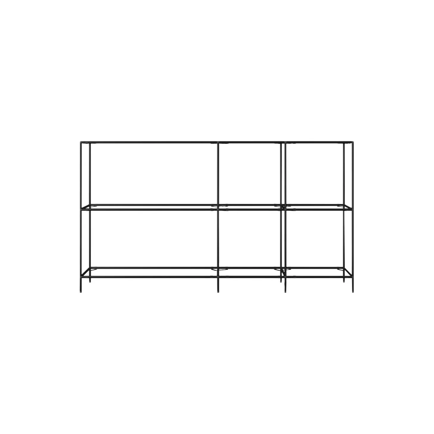 Original Shelf Low i pulverlakeret stål med hylder i hærdet glas fra Abstracta® System. Farve: glass. Mål: H: 90 x L: 161 x D: 36 cm. Design: Poul Cadovius.