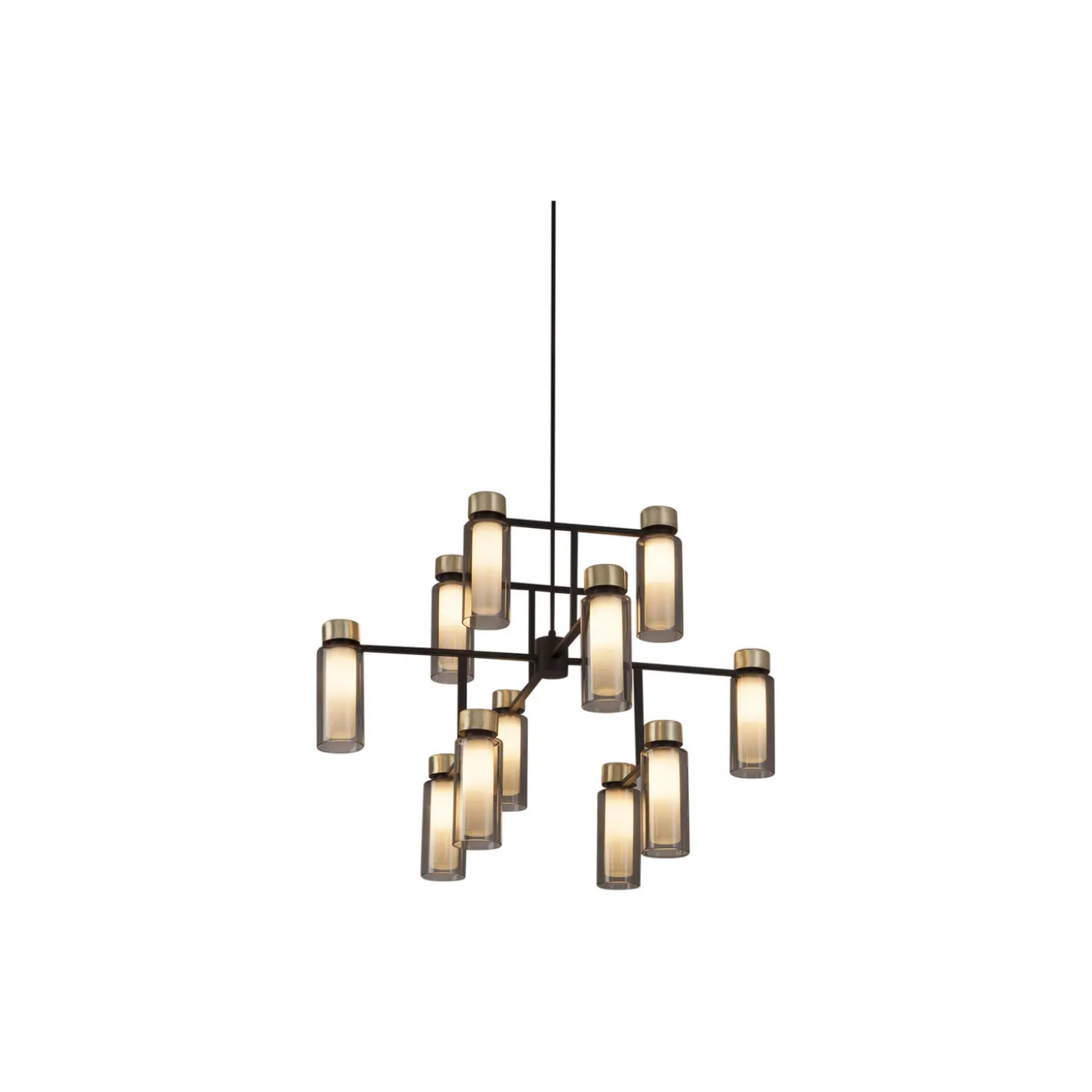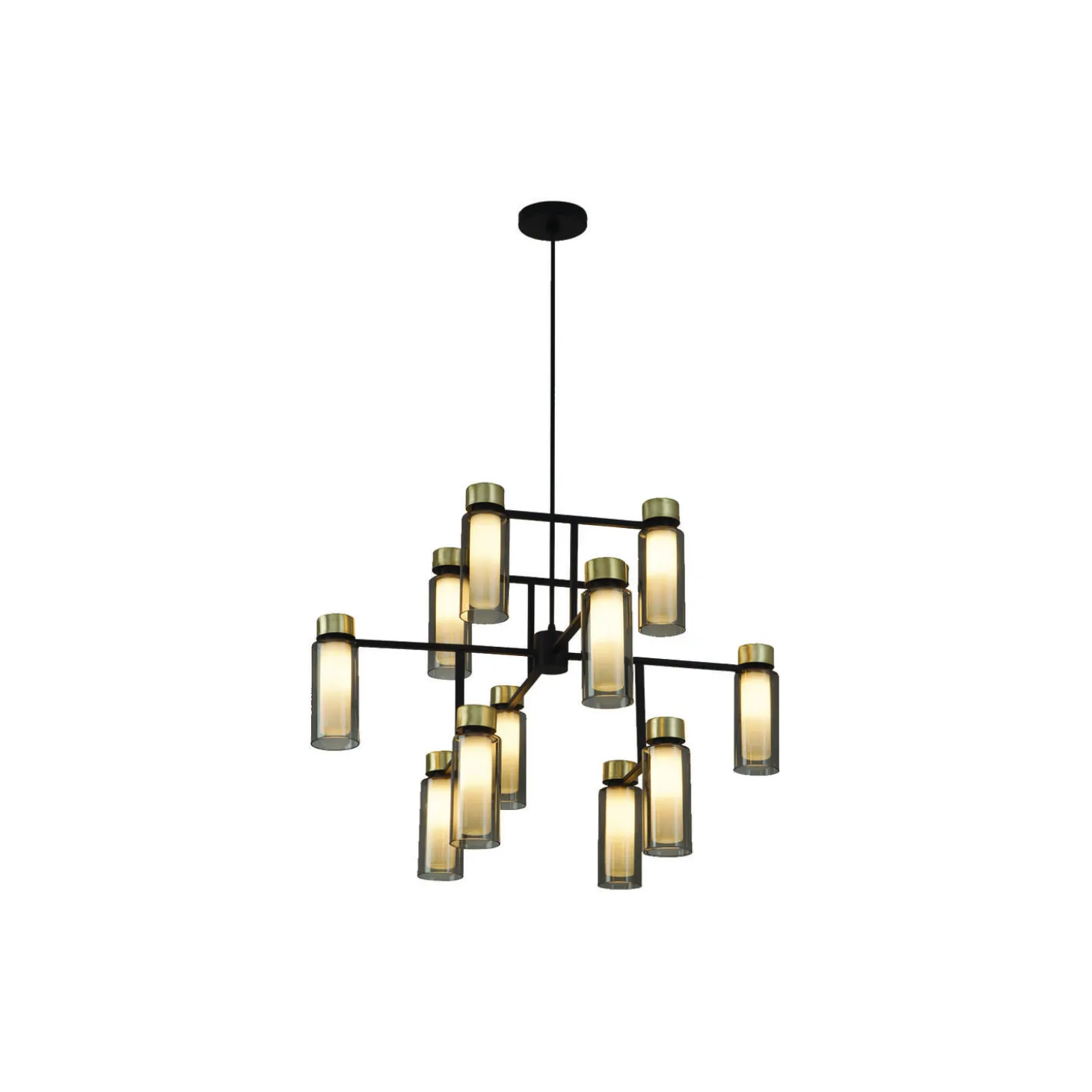 OSMAN lysekrone i aluminium, børstet messing og glas fra Tooy. Farve: mat sort/børstet messing/røget glas. Mål: H: 60 x Ø 85 cm. Lyskilde: 12 x maks. 10W E14 220/240V. Design: Corrado Dotti.