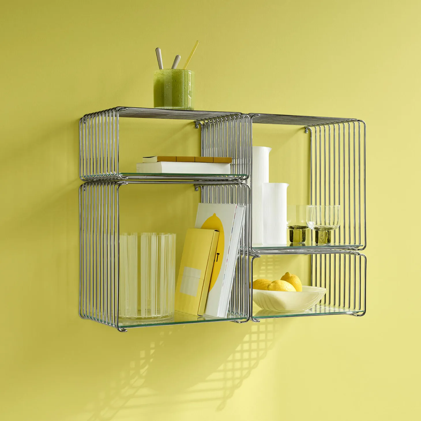 Tilføj indlægshylden til Panton Wire og få en flade, hvor selv de mindste ting kan opbevares trygt i din trådreol. Foruden at være praktisk, sætter indlægshylden et æstetisk præg.