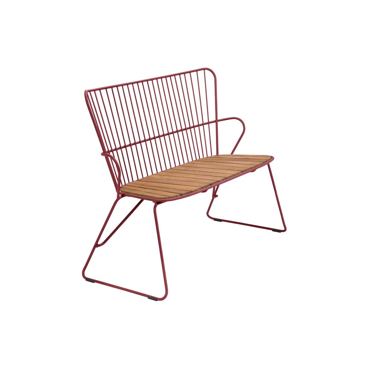PAON bænk i bambus og pulverlakeret stål fra HOUE. Farve: paprika. Mål: H: 90 x B: 116 x D: 55 cm. Siddehøjde: 46 cm. Design: Henrik Pedersen.