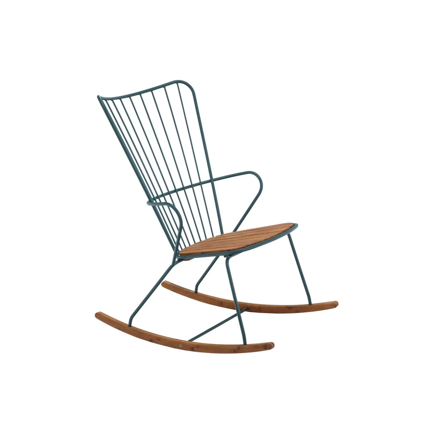 PAON gyngestol i bambus og pulverlakeret stål fra HOUE. Farve: pine green. Mål: H: 91 x B: 59 x D: 77 cm. Siddehøjde: 40 cm. Design: Henrik Pedersen.