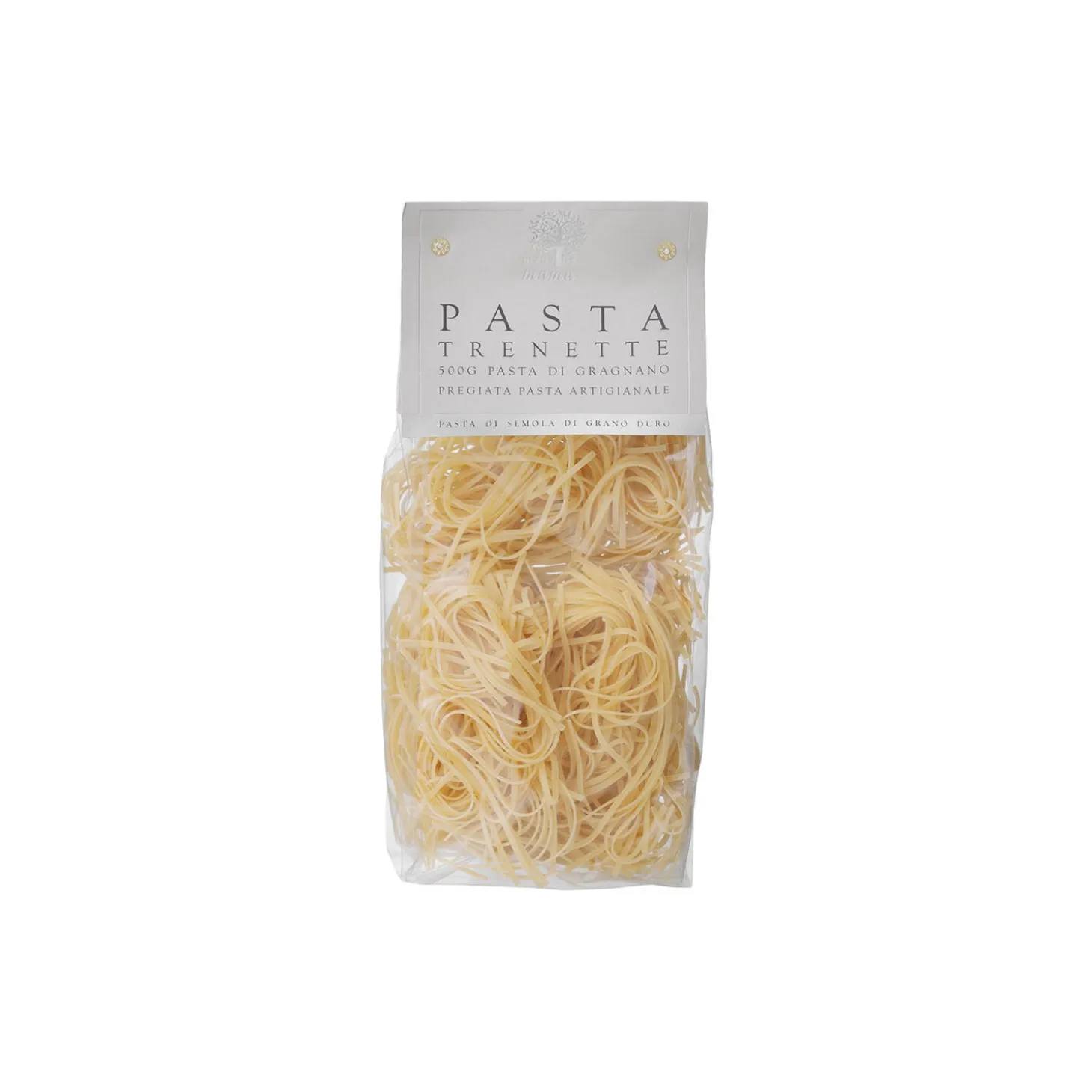 Pasta Trenette er pastaen, som alle elsker. Den minder om tagliatelle, blot tyndere, og giver plads til selv de helt fine og delikate saucer. Den tagliatelle lignende pasta er den typiske pasta fra Ligurien og den pasta, vi får bedst respons på.