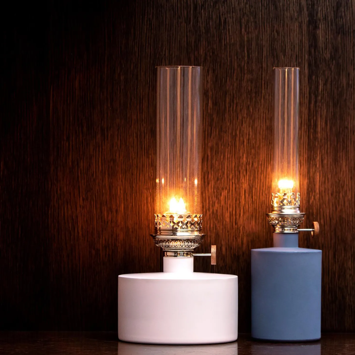The Patina oil lamps will create a cosy atmosphere wherever it is placed. The big oil lamps are available with copper surface and in several powder coated colors. They can be customized with clear or frosted glass. It is made of stainless steel. The original Patina oil lamp with the copper plated surface will get a beautiful and natural patina if left unpolished.