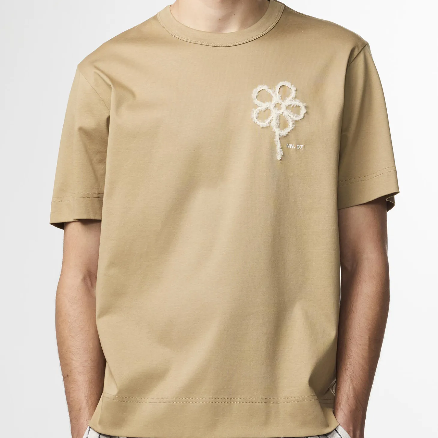 Relaxed-fitting t-shirt crafted in a mercerised organic cotton jersey interlock with a wide bottom hem and completed with embroidery at the chest.