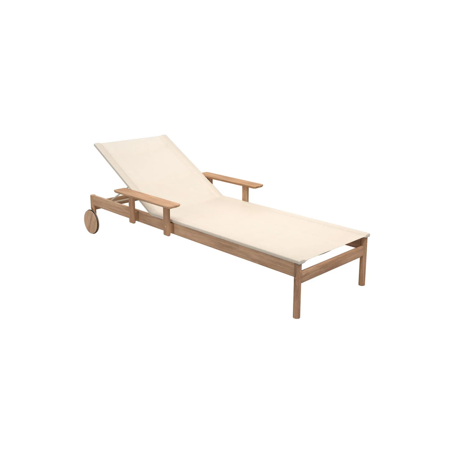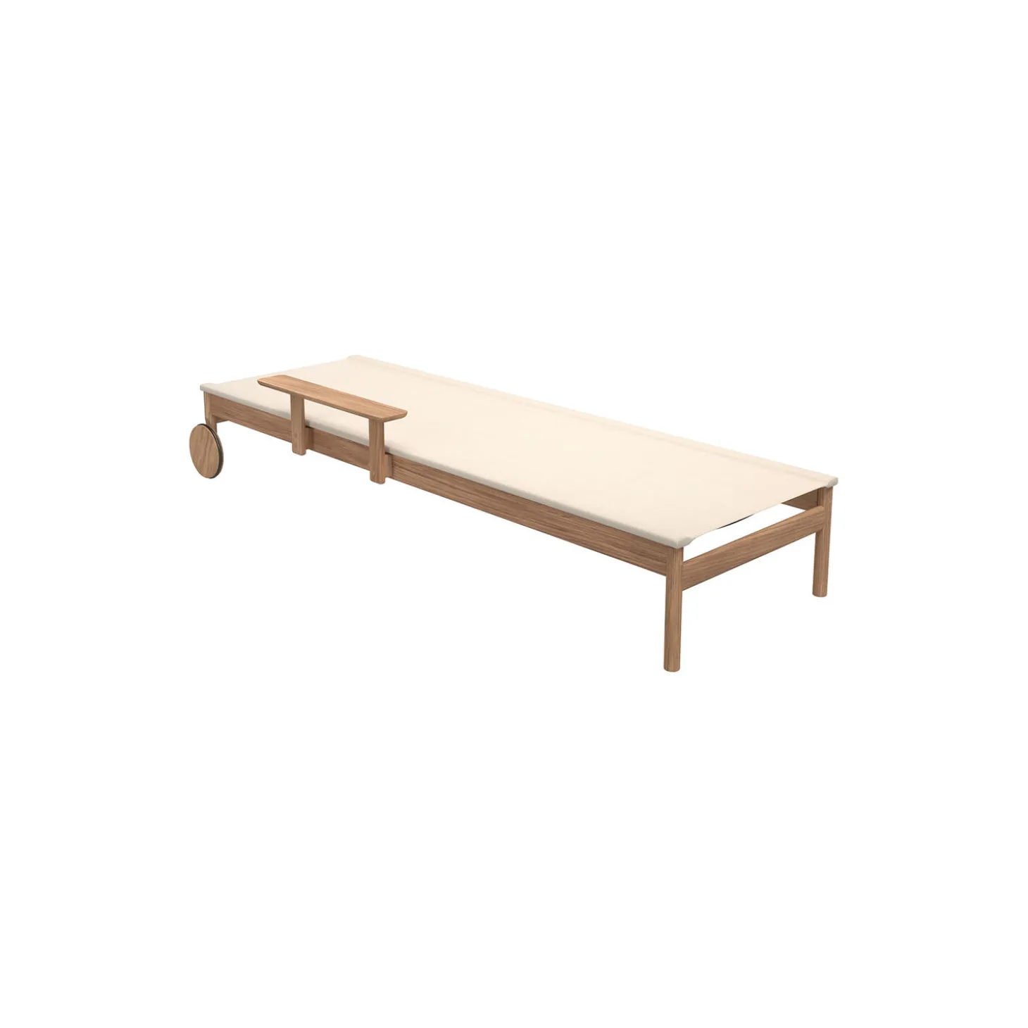 Pelagus solsengen er yderst komfortabel og fleksibel og kan forbedres yderligere med et armlæn i 100 % FSC-certificeret teaktræ, som gør det endnu nemmere at nyde de udendørs timer med en bog eller en drink. Armlænet kan placeres på den ene eller begge sider af solsengen og udgør en attraktiv tilføjelse til den slanke teakramme.