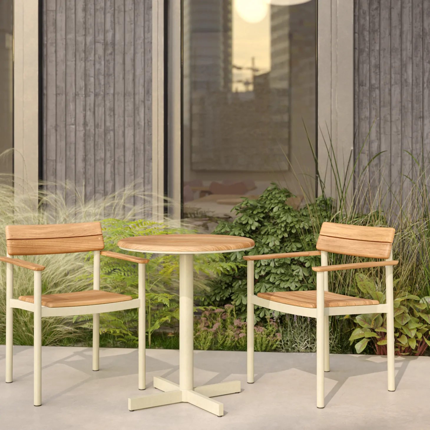 - Materiale: ubehandlet massiv teak og stel i pulverlakeret aluminum