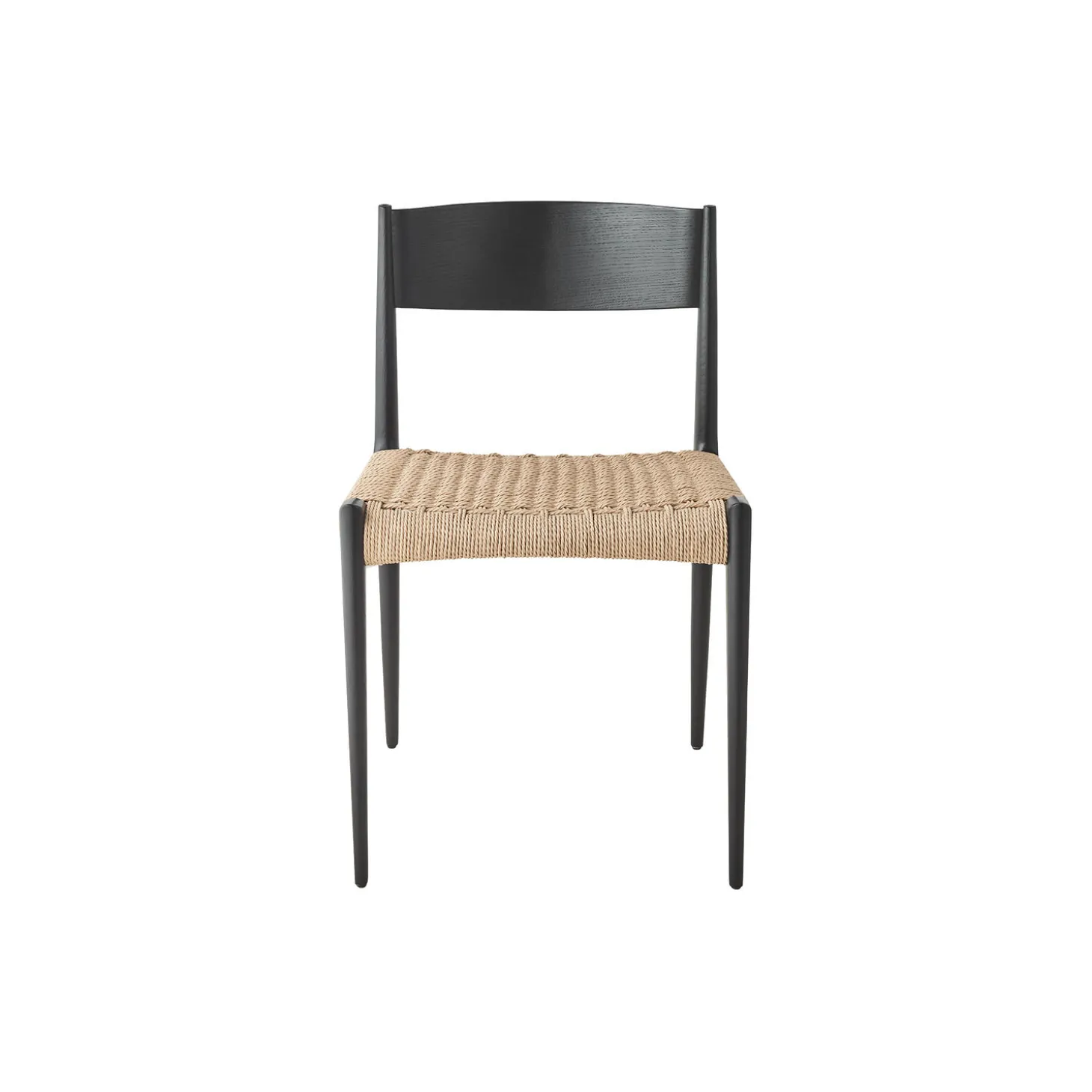 Pia spisebordsstol i sortmalet eg med sæde i papirgarn fra DK3. Farve: sortmalet eg/natur. Mål: H: 75 x B: 48 x D: 49 cm. Siddehøjde: 45 cm. Design: Poul Cadovius.