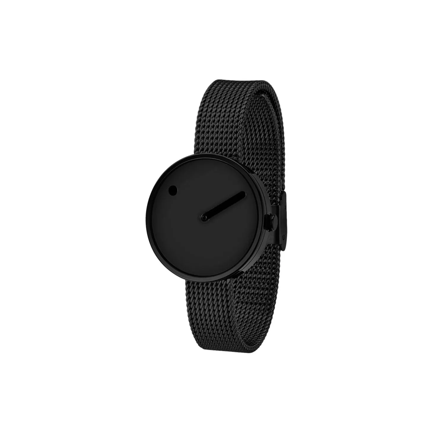 - Materiale: rustfrit stål, poleret stål, mesh-rem, hærdet mineralglas