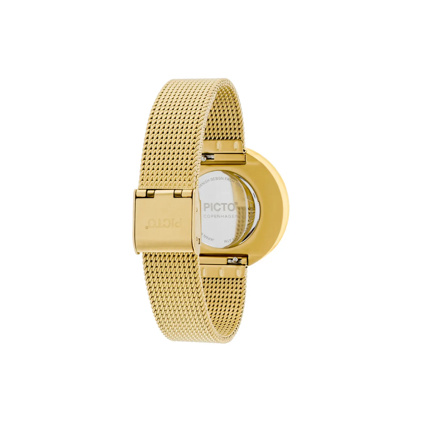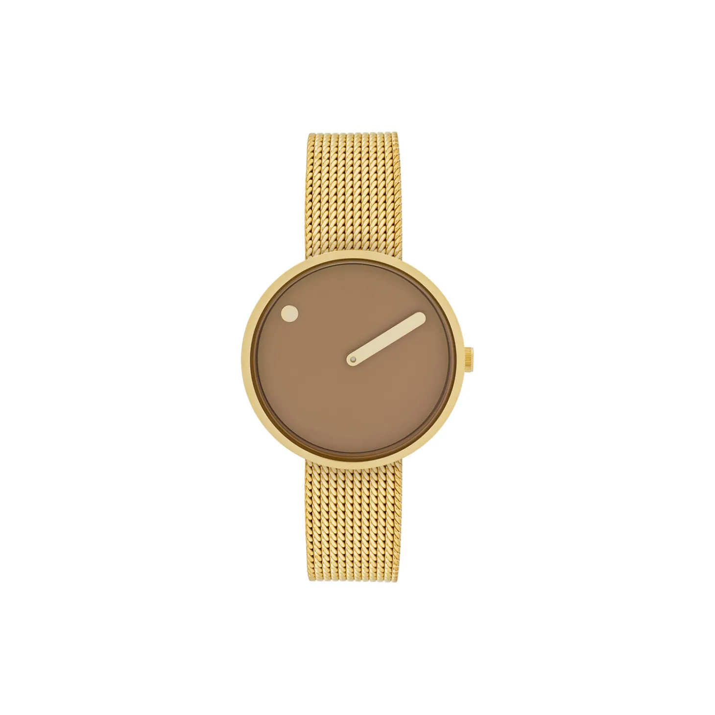 PICTO wrist watch with a rotating dial and gold mesh band. The dial on this watch is 34 mm.