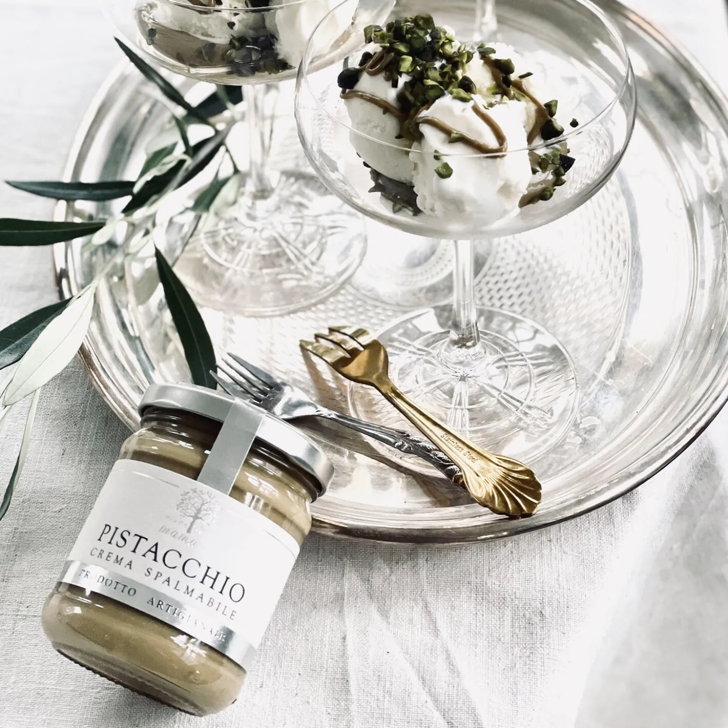 - Ingredienser: 50% lækre italienske pistacienødder, 40% sukker, 10% ekstra jomfruolivenolie, en knivspids salt