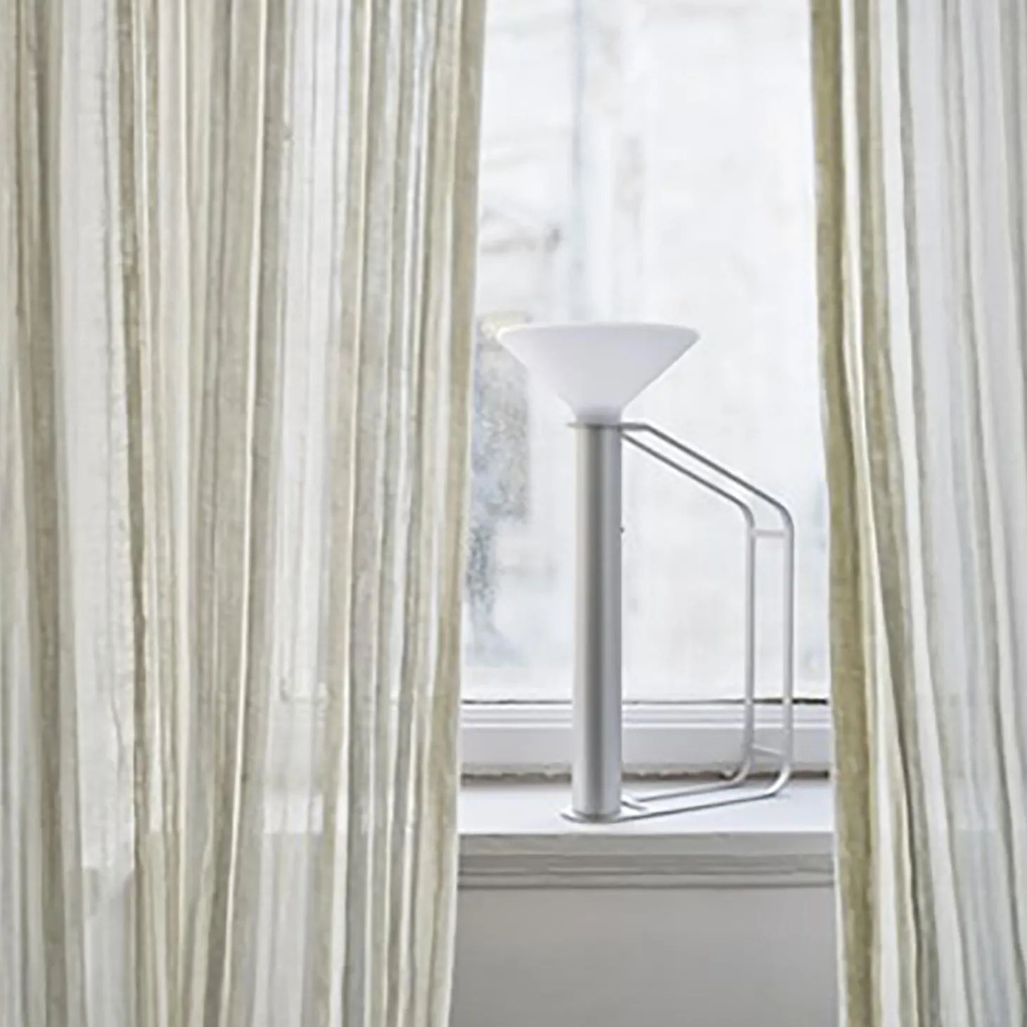 Piton is an untraditional take on the battery-powered portable lamp, playfully referencing the archetypal flashlight. Refined anodized extruded aluminum enhances its elegant form and distinct functionality inspired by tools used for mountain climbing. It is a versatile ambient light with 6 hours of battery life on 100% brightness and 13,5 hours on 50% brightness that can be used lying, standing, tilting on a shelf or suspended, depending on the space or spot you want to illuminate, effortlessly moving between indoors and outdoors. Comes with a woven fabric USB-C cable for charging.