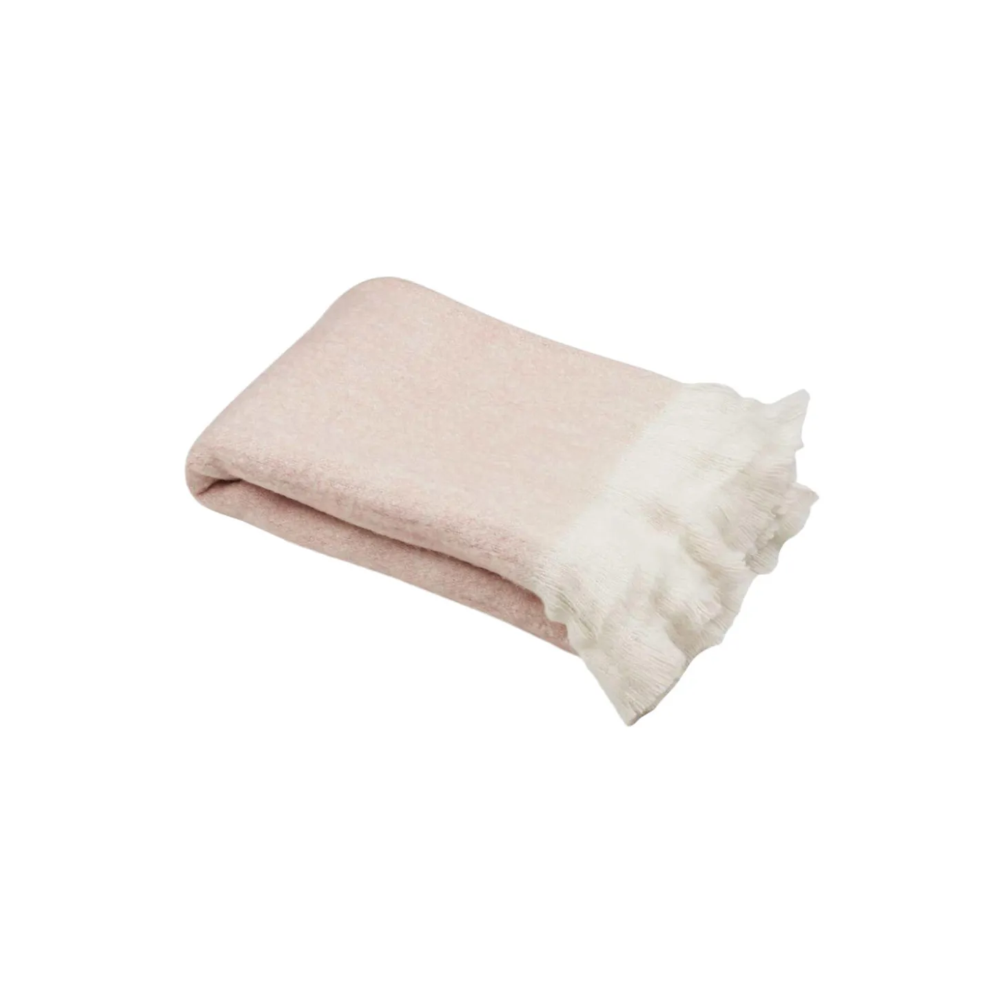 Plaid i 65% akryl, 25% polyester og 10% mohairuld fra NATURES Collection. Farve: light pink. Mål: 130×170 cm.