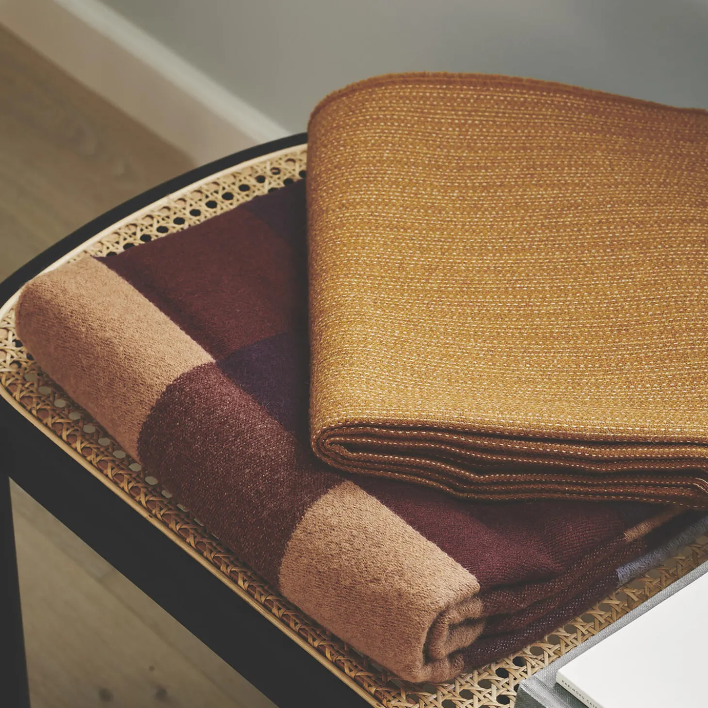 Plain Beat er vævet i 100% uld. Disse mange forskellige kombinationer af farver er af det samme livlige design, der består af firkantede felter i spil med hinanden. Hvert enkelt tæppe er vævet i 100% ren uld.