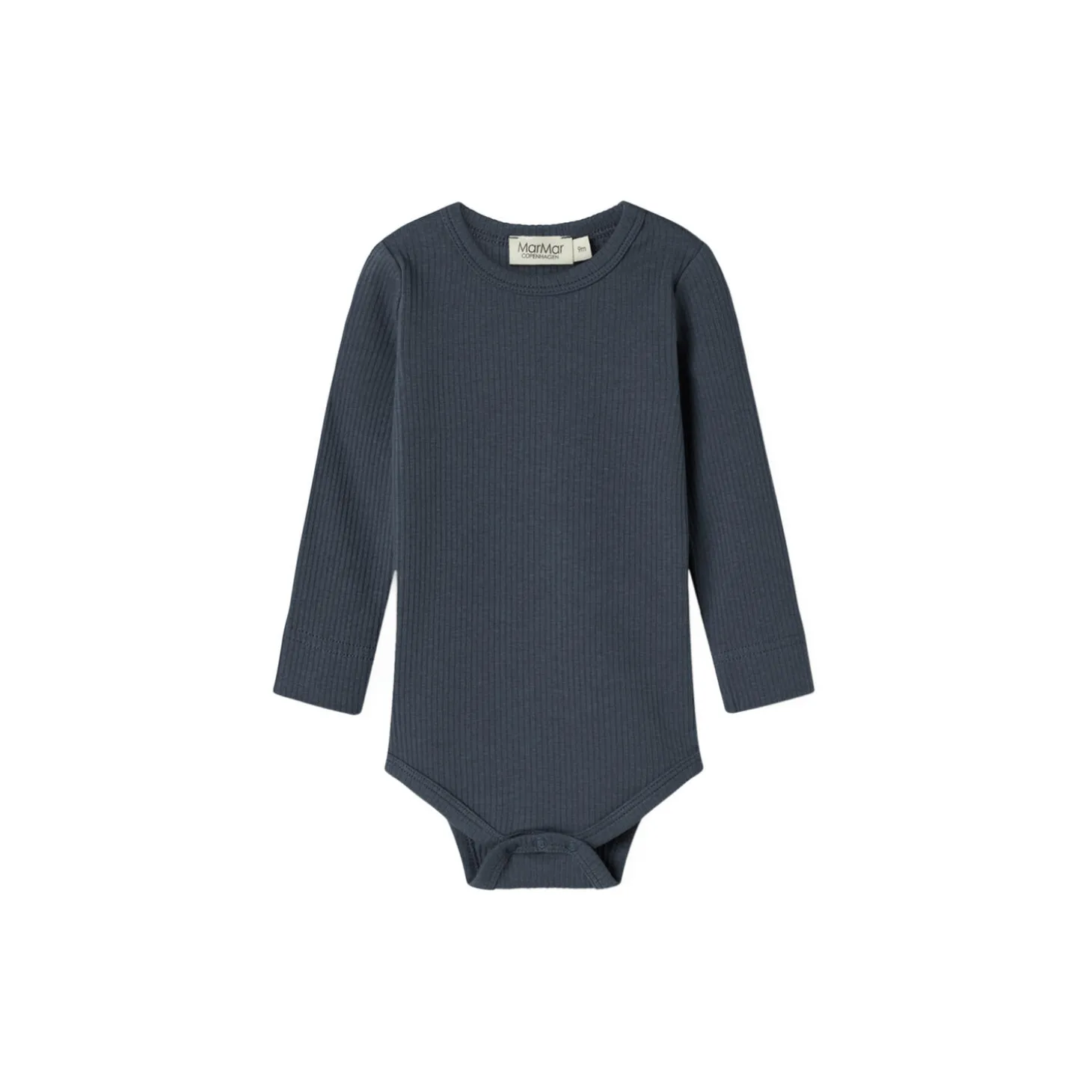Enkel langærmet baby modal bodystocking, der bliver lukket mellem benene for nem bleskiftning. Bodystockingen er ribstrikket, blød, holder form og farve og har elastan i sig som gør den strækbar og behagelig at have på