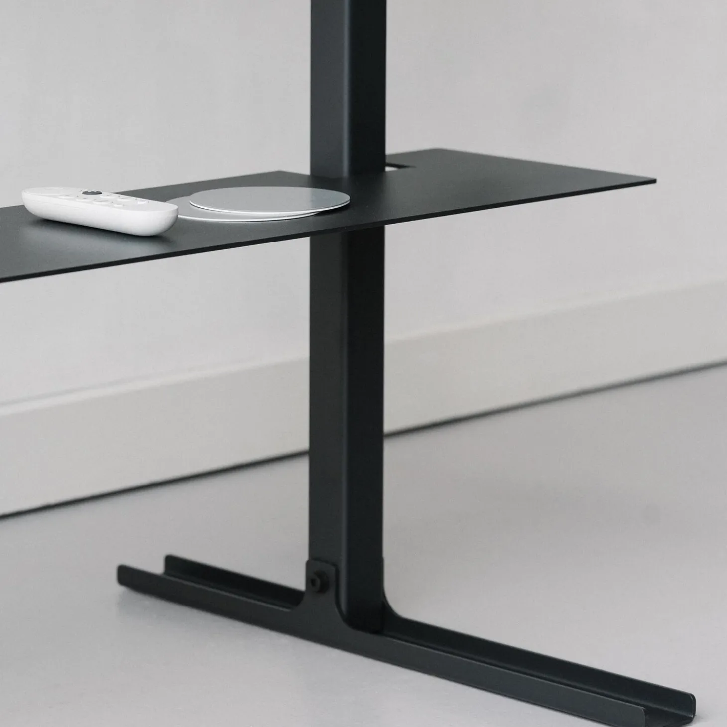 Plate Shelf er en hylde designet til Straight Tall, Straight Rollin’ og Bendy Tall. Hylden er lavet i massivt, pulverlakeret stål, som gør, at den går i ét med standerens udtryk. Plate Shelf fungerer som en æstetisk og funktionel tilføjelse til tv-standerne og kan bruges til opbevaring af soundbar, tv-boks, spilkonsol eller lignende. Hyldens monteringshængsler er beklædte med et kraftigt gummimateriale, som beskytter standeren for ridser og skrammer. Plate Shelf vejer 5.7 kg. Den maksimale belastningskapacitet for hylden er 8 kg.