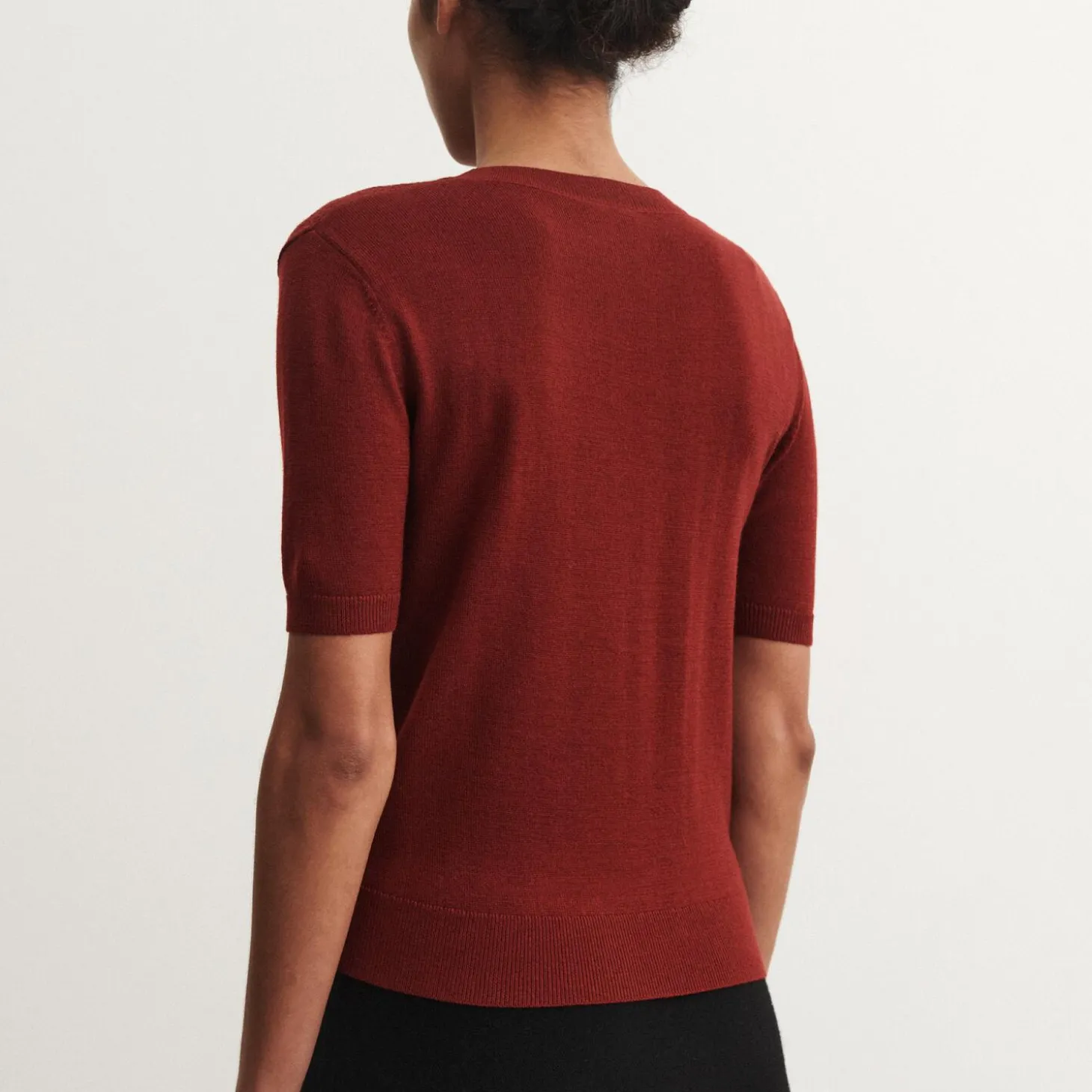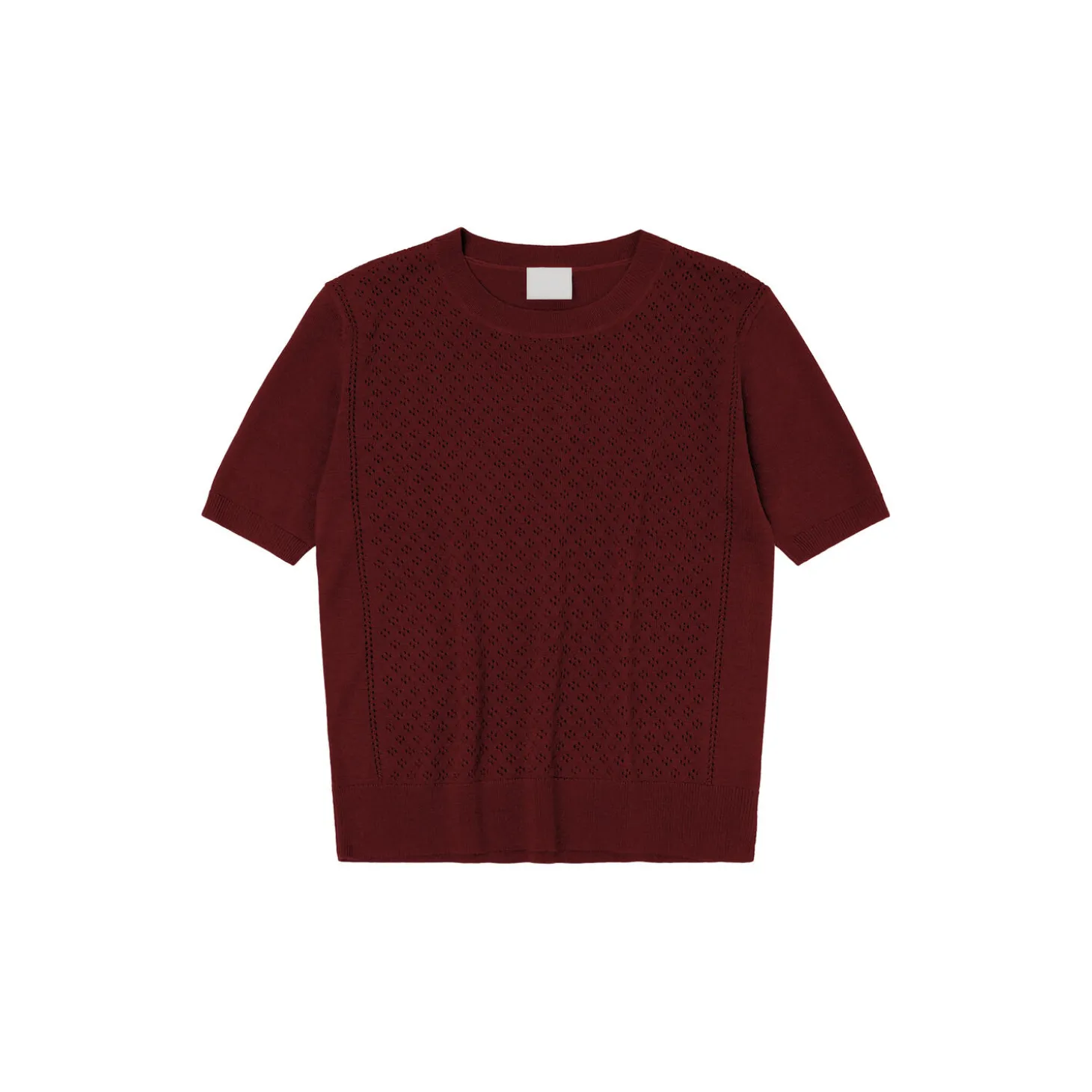 Denne T-shirt er lavet af fin merinould og er strikket i et fint pointellemønster med dekorative sidepaneler i single jersey og er afsluttet med ribkanter. Den har korte ærmer, rund hals og en almindelig pasform. Vores merinould er BLUESIGN® og RWS-certificeret, fri for skadelig kemi og stammer fra får, der ikke er blevet udsat for mulesing. 100% OEKOTEX®, RWS og BLUESIGN® certificeret merinould. Garnet er behandlet med en miljøvenlig teknologi, som gør, at tøjet kan maskinvaskes på uldprogram. Behandlingen indeholder hverken klorin eller andre halogener.