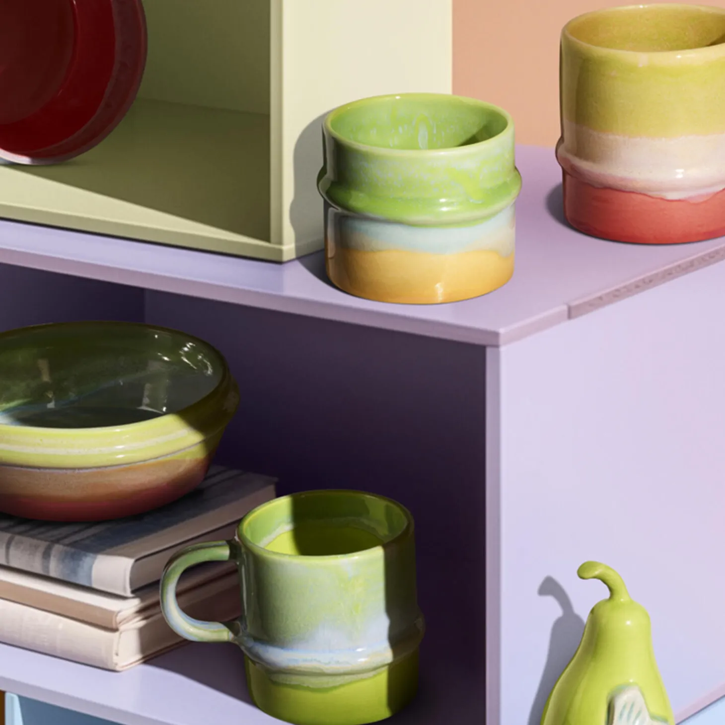 Farverig popkultur møder håndlavede designtraditioner i samarbejdet mellem Kähler og designduoen KIMPOP, der tæller tv-personlighederne Sofie Linde og Joakim Ingversen. I en årrække har duoen med stor passion udforsket keramikkens verden, og deres viden om glasurer, brænding og det keramiske håndværk forener de med deres kærlighed til pop og populærkultur med udgangspunkt i de sene 80’ere og tidligere 90’ere, som de selv er rundet af. Og resultatet? Kollektionen Pottery, der er lige så farverigt som Sofie og Joakim. KIMPOP ønsker at udfordre danskernes brug af farver i boligen, bryde med de traditionelle skandinaviske farvetraditioner og invitere os til at tage flere farverige chancer i indretningen. Den nye kollektion fra Kähler X KIMPOP er et selvsikkert mix af pasteller, opulente glasurer, humoristiske detaljer og former, der vil frem i verden.
