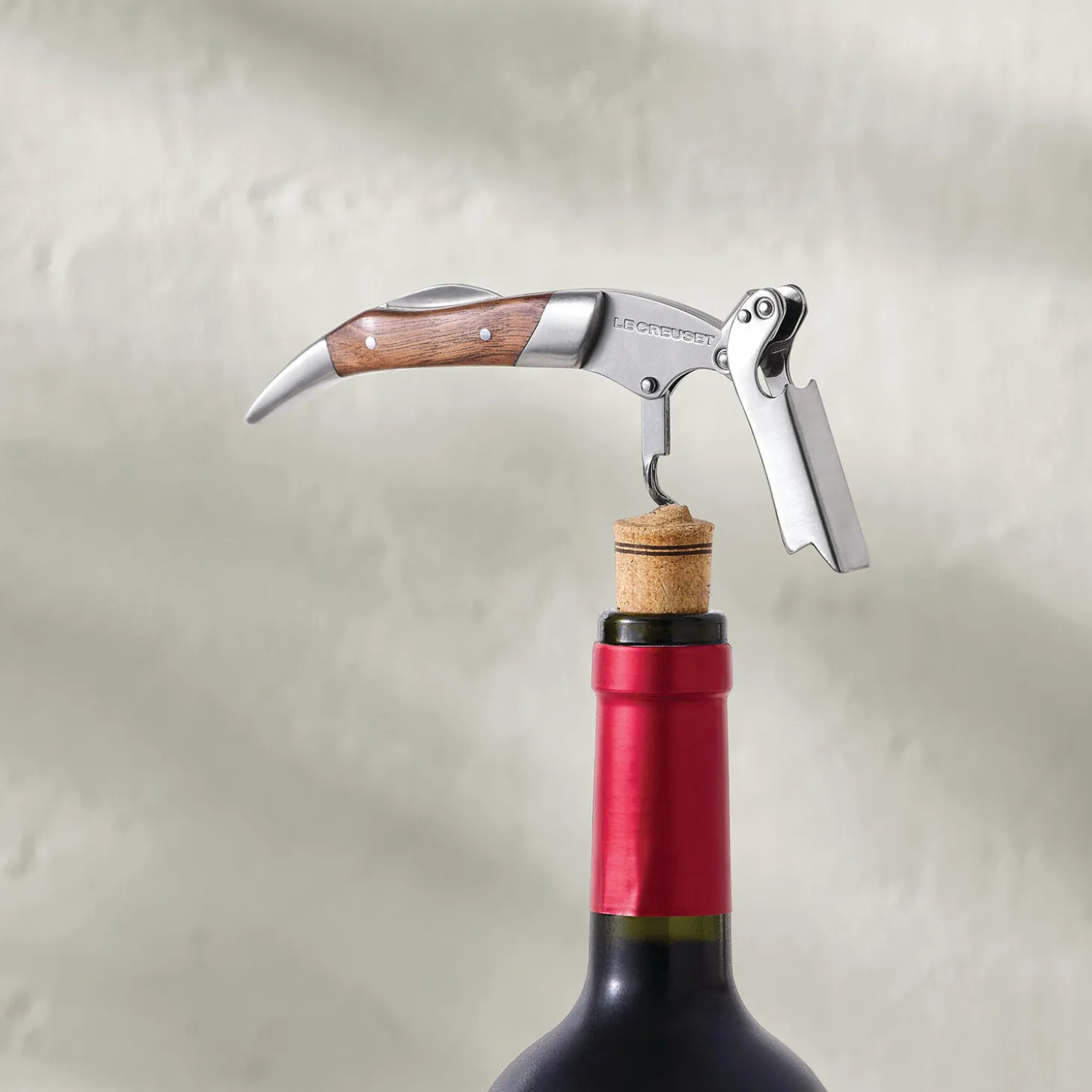 Vinelskere vender sig til den kompakte Tjenerens ven proptrækker for nem flaskeåbning. Dens slanke design giver fremragende løft, og dens innovative ubesværede ét-trins åbning løfter flaskeåbning til et nyt niveau. Med et luksuriøst sort valnød håndtag for et behageligt greb inkluderer det også en indbygget folieskærer og flaskeåbner.
