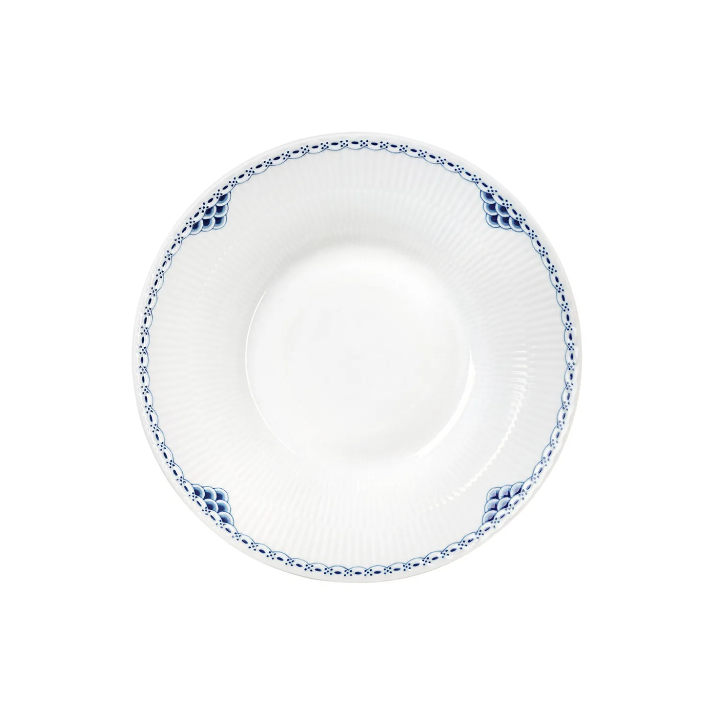 Prinsesse dyb tallerken i porcelæn fra Royal Copenhagen. Farve: hvid/blå. Mål: Ø 24 cm. Design: Royal Copenhagen.