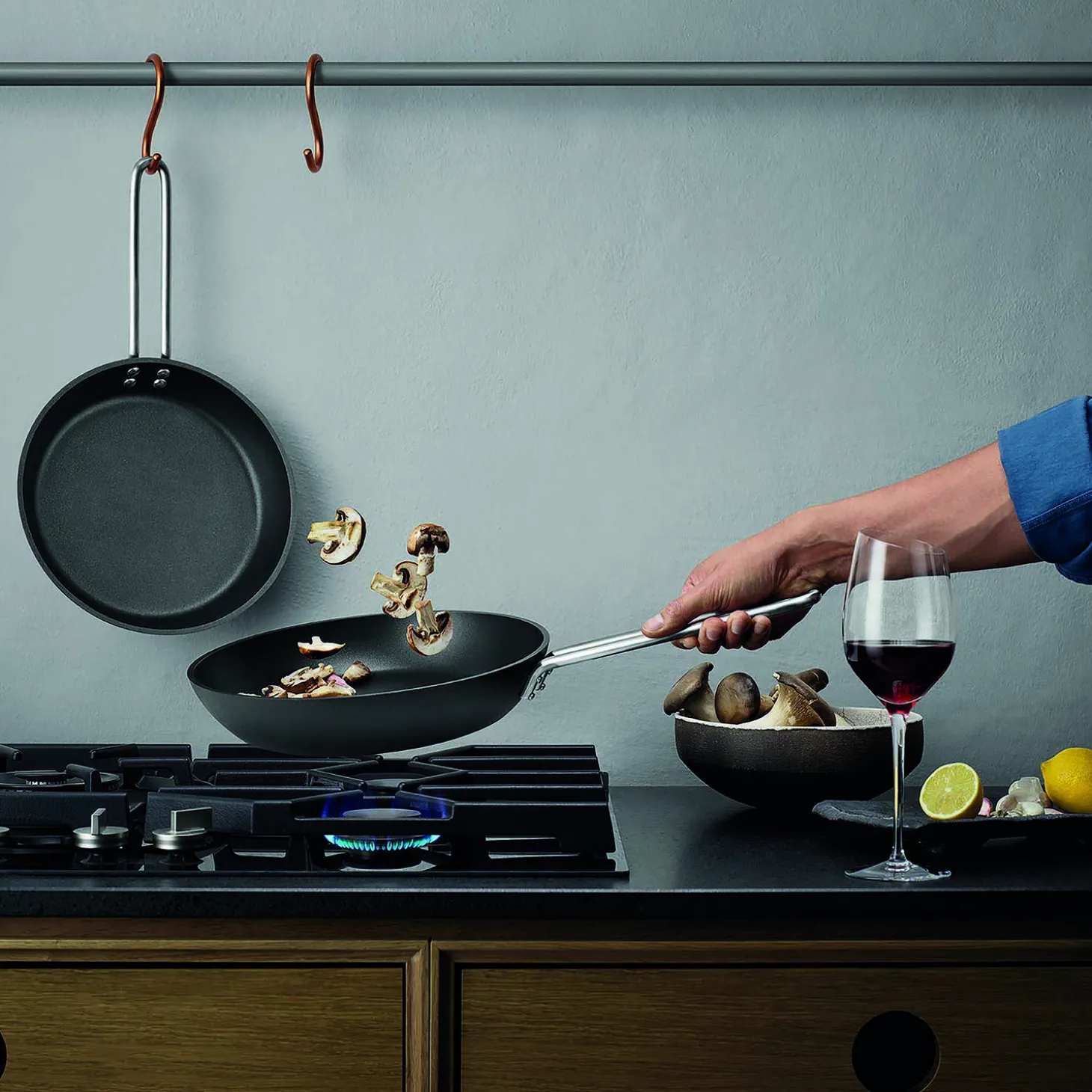Det ultimative redskab til den ambitiøse kok. Perfekt til alt fra hård stegning ved høj varme til skånsom tilberedning af delikate råvarer. Den professionelle stegepandes korpus er fremstillet af 85 procent genanvendt aluminium og udstyret med en 10 mm bund, en 7 mm kant og et 10 mm wire greb. Den kraftige konstruktion sikrer maksimal holdbarhed og fremragende varmeregulering- og fordeling. Den keramiske Slip-Let belægning giver panden en fremragende slippeevne, der både letter madlavning og rengøring. Panden kan modstå temperaturer op til 400°C og fungerer på alle varmekilder, inklusive induktion. Vi tilbyder 5 års belægningsgaranti og 25 års garanti på, at panden holder formen og ikke bliver skæv i bunden. Tåler maskinopvask, men det anbefales at vaske panden i hånden for at bevare slippeevnen.