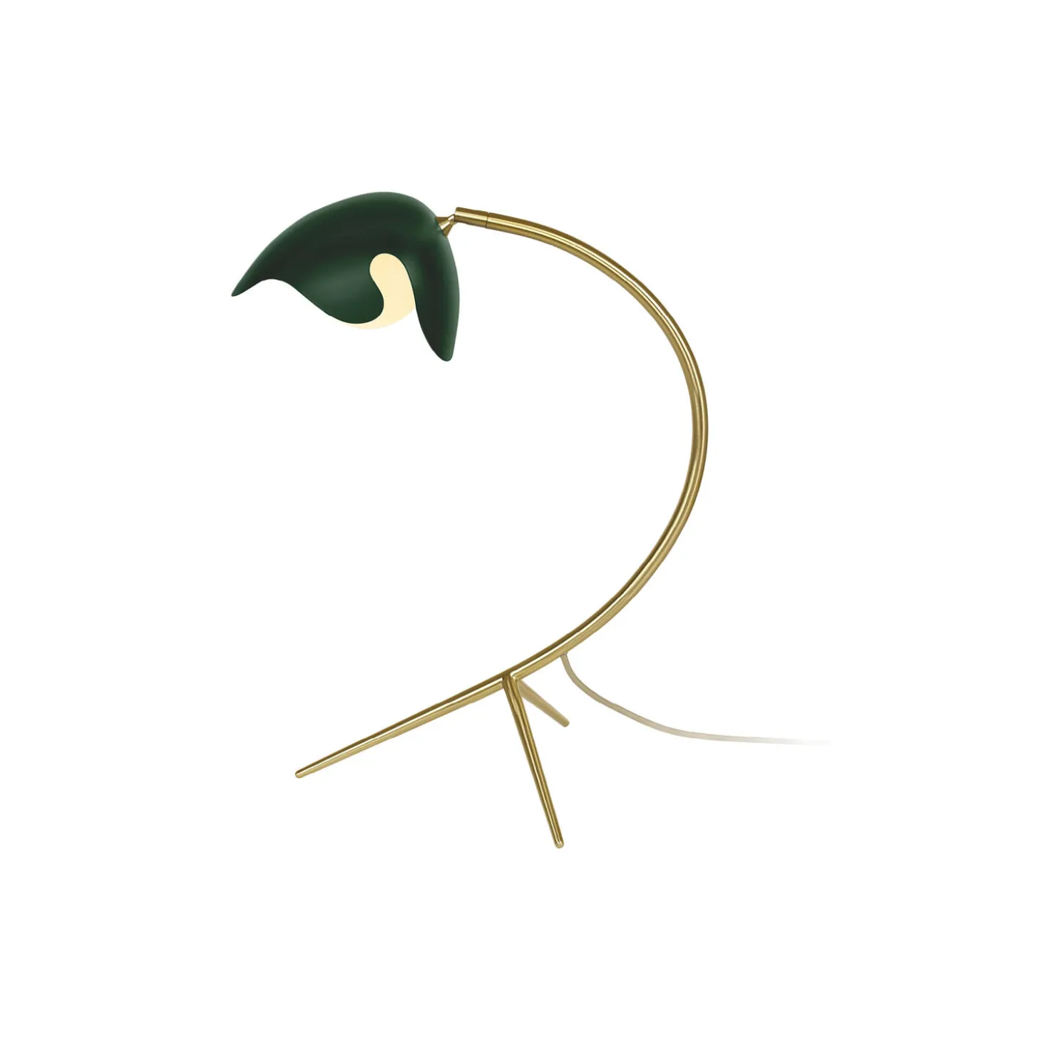 PS38 bordlampe i lakeret aluminium og messing fra ATBO. Farve: green/brass. Mål: H: 45 x B: 26 x D: 32,9 cm. Lyskilde: maks. 3W G9. Design: Palle Suenson.