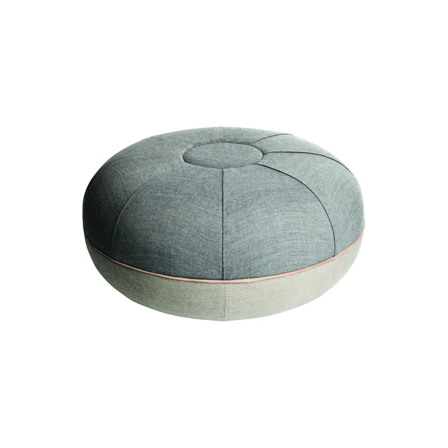 Puf i polyurethanskum med betræk i Remix stof fra Kvadrat på toppen samt naturlæder og kanvas i bunden fra Fritz Hansen. Farve: concrete. Mål: H: 29 x Ø 60 cm. Størrelse: L. Design: Cecilie Manz.