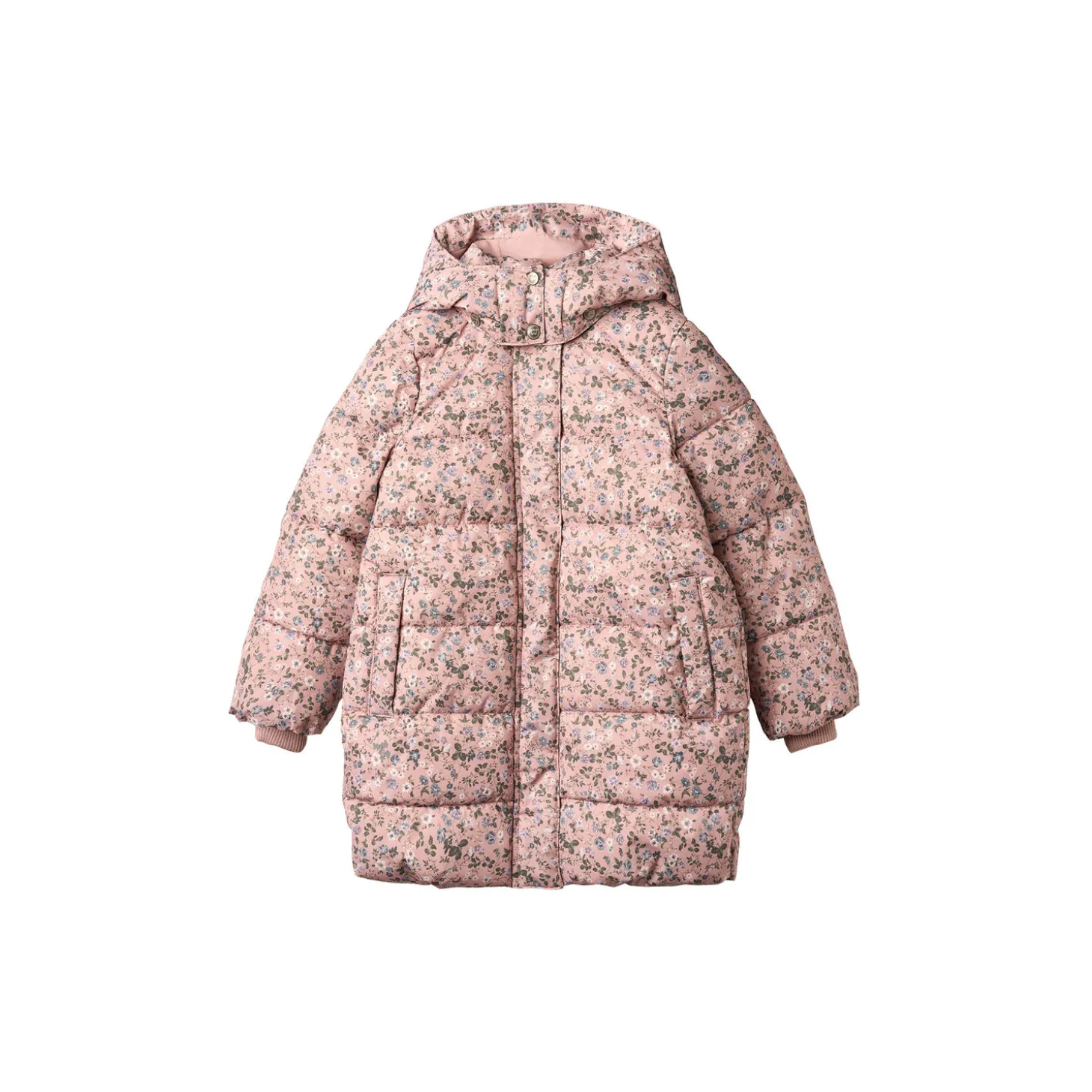 Long puffer jacket with print and an adjustable elastic at the waist for the junior child. – Long A-shape – Adjustable elastic at the waist- Detachable and adjustable hood- Rib storm cuffs- Coil zipper down the front with placket and press buttons- Welt pockets – Reflectors- Wheat signature printWheat’s puffer jacket with technical padding is perfect for the many cold autumn and winter days. It is designed with high durability and comfort, as it is water and wind resistant, dirt repellent and easy to clean. The jacket has a simple and classic look with practical details such as detachable and adjustable hood, storm cuffs and welted pockets. It is available in beautiful colours and hand drawn prints made by Wheat’s in-house design team.Please note that the puffer styles do not have taped seams and are therefore not entirely waterproof.—Water resistant: 8.000 mmBreathability: 5.000 g/m2/24 hAbrasion resistance: 30.000 rubStandard 100 by OEKO-TEX®PFC-freeFlourine-free water and soil repellent finish (BIONIC FINISH ECO)The product is GRS certified—Outer shell: 100% Recycled polyester3M technical padding: 100% Recycled polyesterLining: 100% Recycled polyester