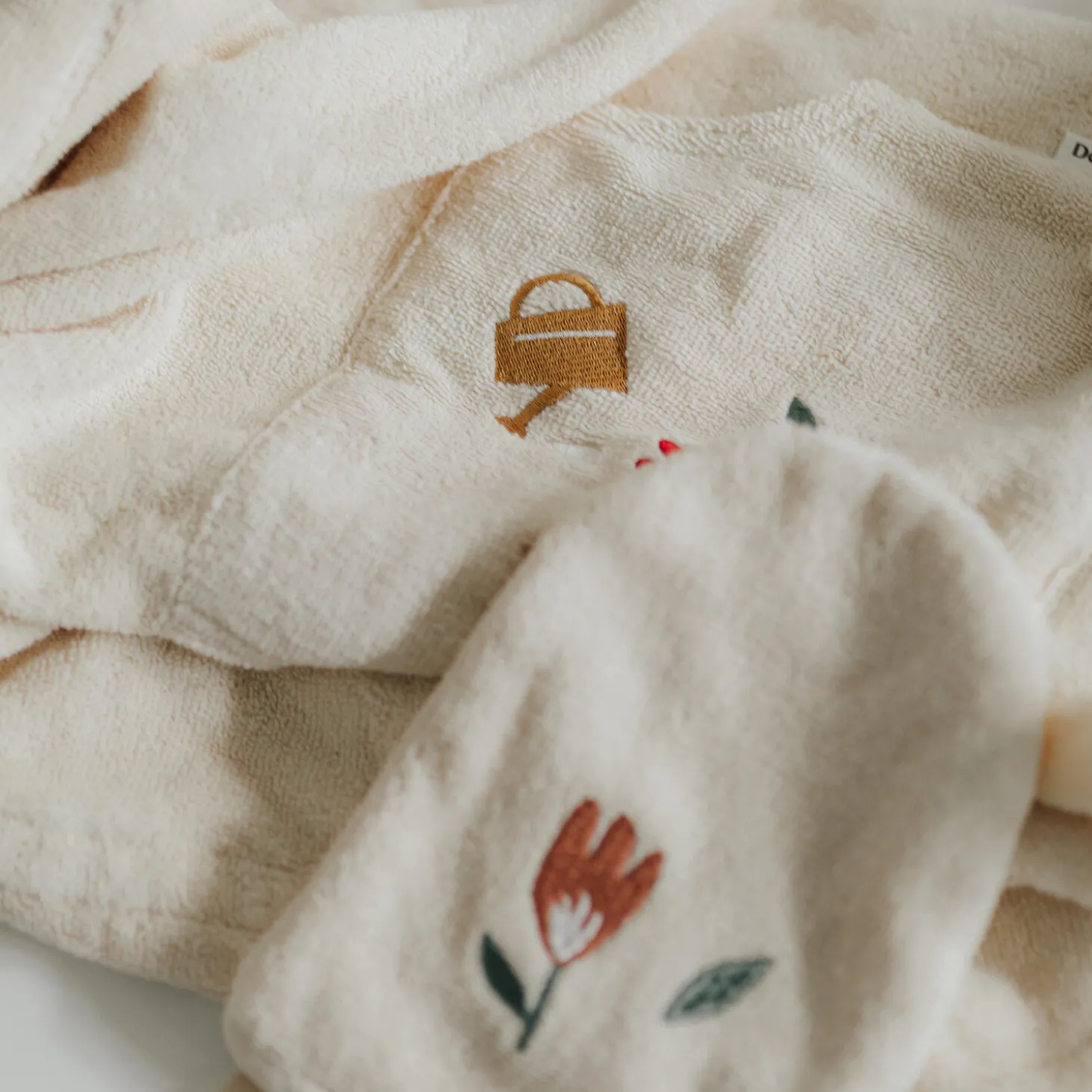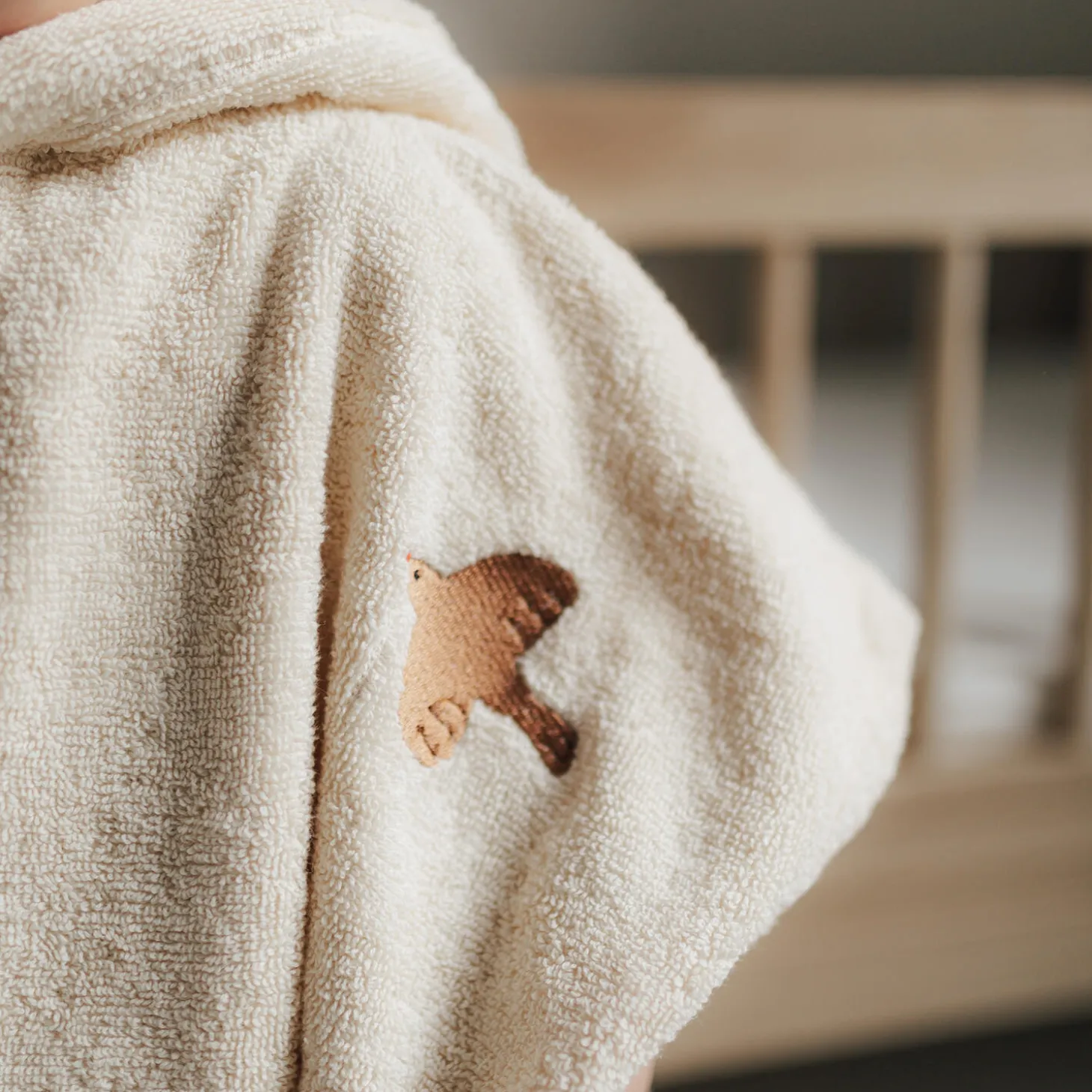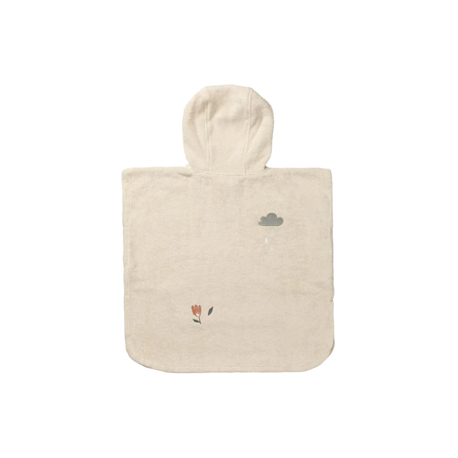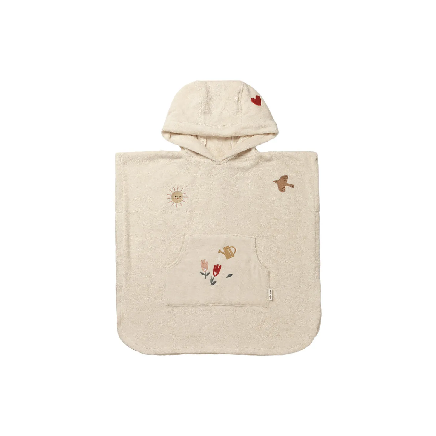 Hyggelig badeponcho i tyk og blød frotté med en fast hætte og kængurulomme. Den er nem at tage over hovedet efter bad eller på stranden. Ponchoen har små, fine broderier, der er inspireret af natur og udeliv.Ponchoen er ONE SIZE. Anbefalet alder ca. 2-6 år.