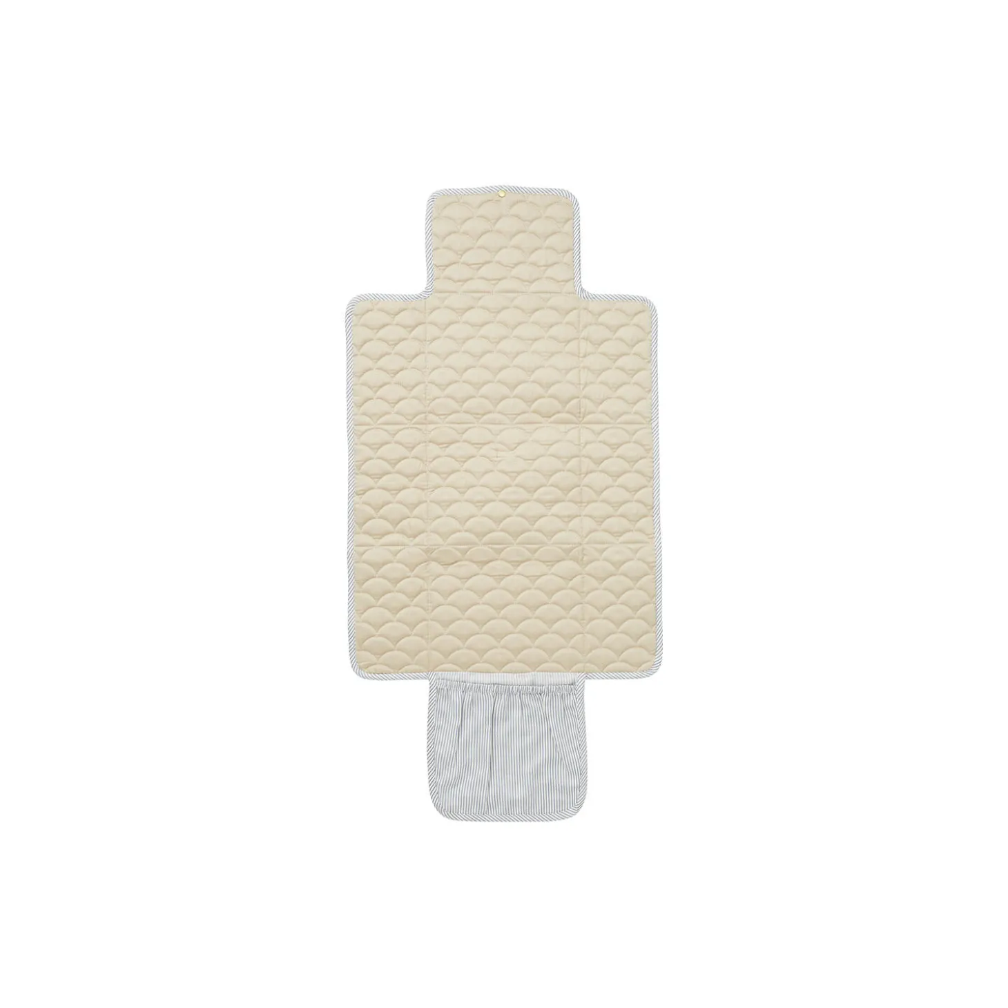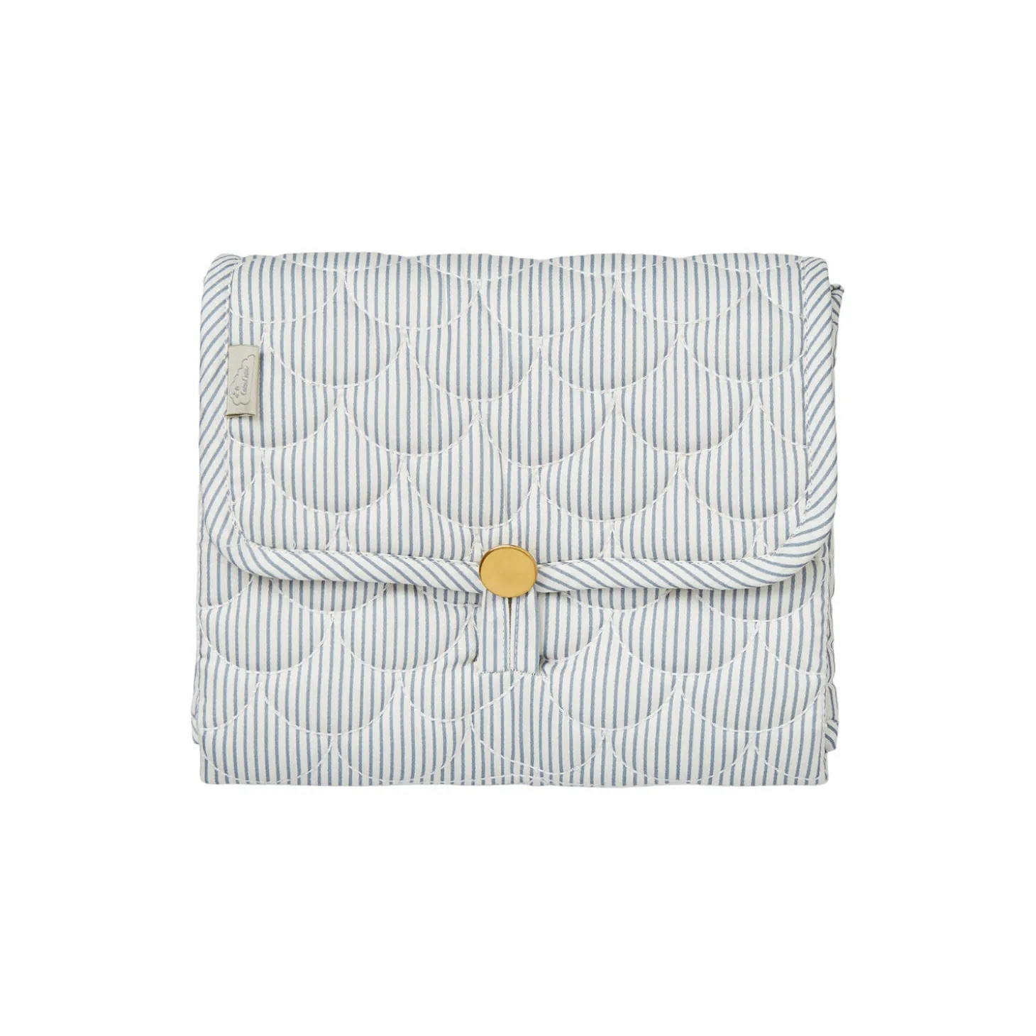 Praktisk pusleunderlag med et fint, quiltet bølge-mønster – perfekt til skiftesituationer ude af huset, hvor du har brug for et blødt og rent underlag til den lille. Det kan nemt foldes sammen med én hånd til en praktisk størrelse, der passer i pusletasken. Pusleunderlaget er vatteret med et blødt skumlag, og er coated på ydersiden, så det er smuds- og vandafvisende. Indeni har pusleunderlaget en smart og praktisk lomme der kan rumme en ble og en stofble.Pusleunderlaget kommer i mange farver, samt et udvalg af fine Cam Cam prints.