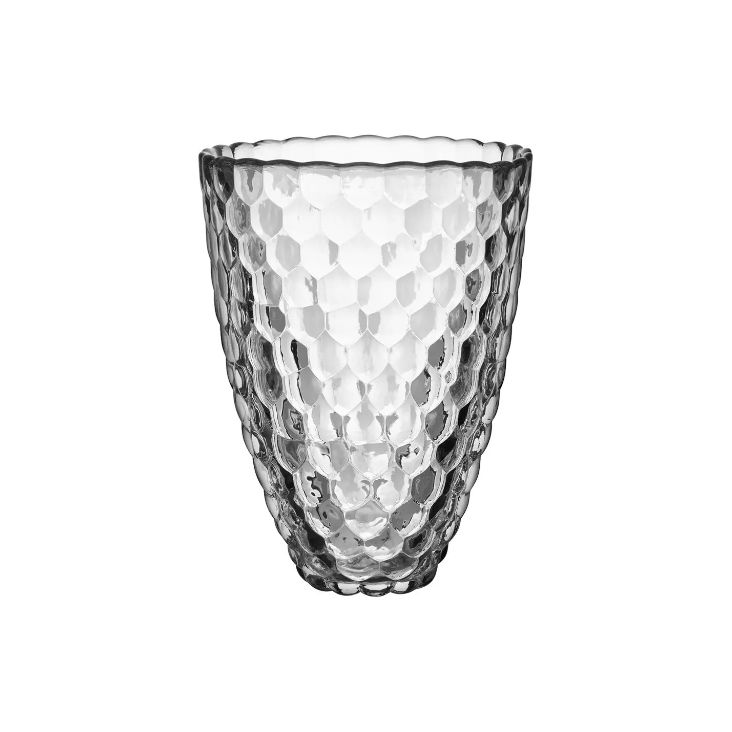 The Raspberry series has a design resembling a raspberry, with its intricate pattern of round shapes. The large vase is suitable for longer flowers. Design by Anne Nilsson.