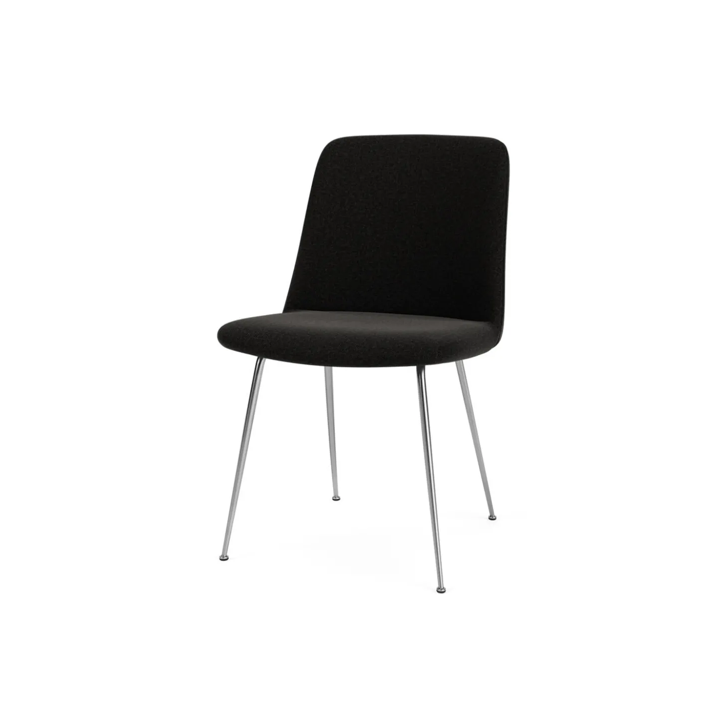 Rely HW8 spisebordsstol med polstring i Re-Wool 198 af Kvadrat og stel i forkromet stål fra &Tradition. Farve: black/chrome. Mål: H: 82 x B: 47 x D: 55 cm. Siddehøjde: 48 cm. Design: Hee Welling.